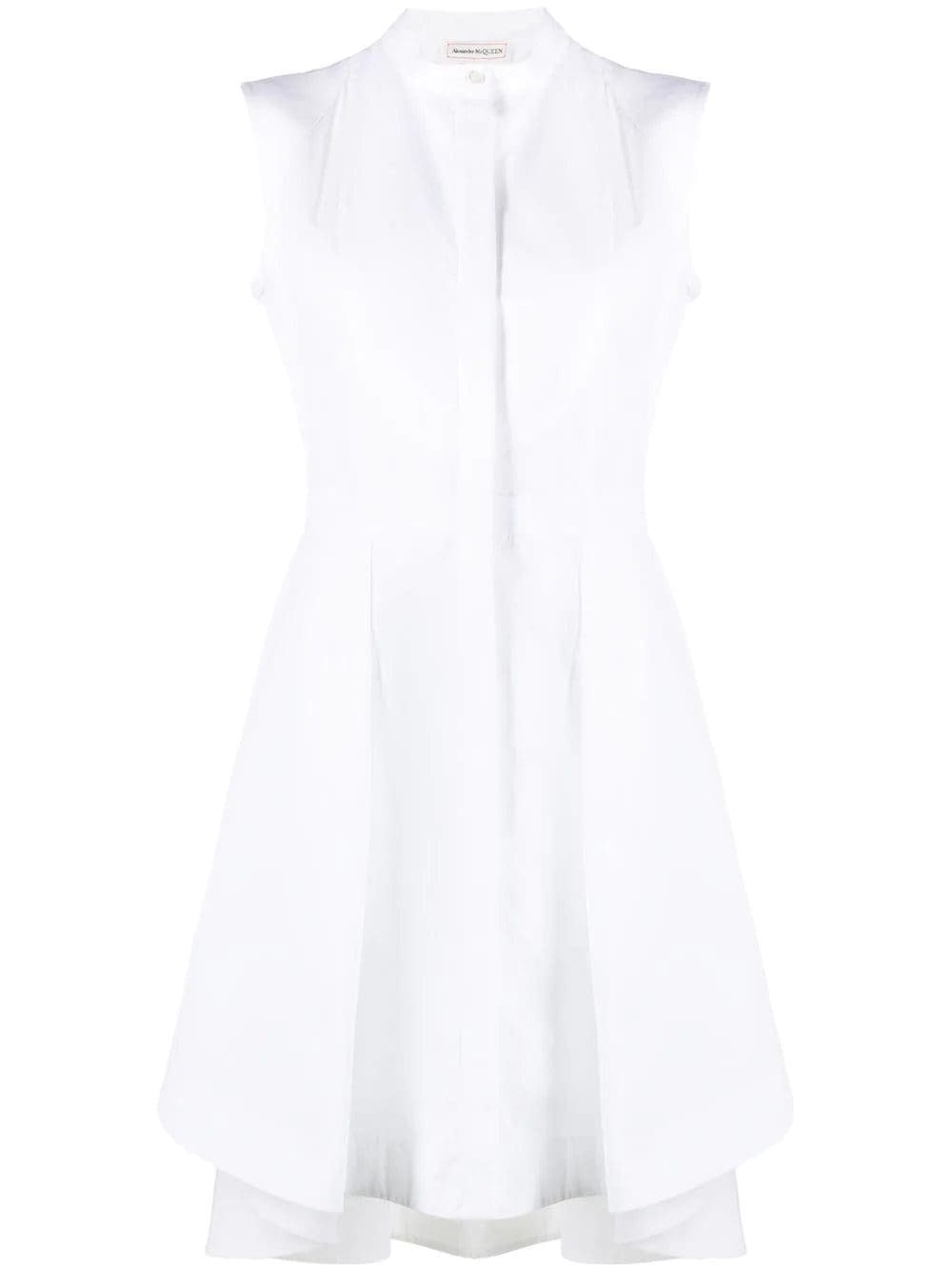 Running away from the brand's usuaç darker tones, this sleeveless short dress from Alexander McQueen's SS23 arrives in an all-white hue. Its design is crafted from soft cotton and features pleat details on the front and back.