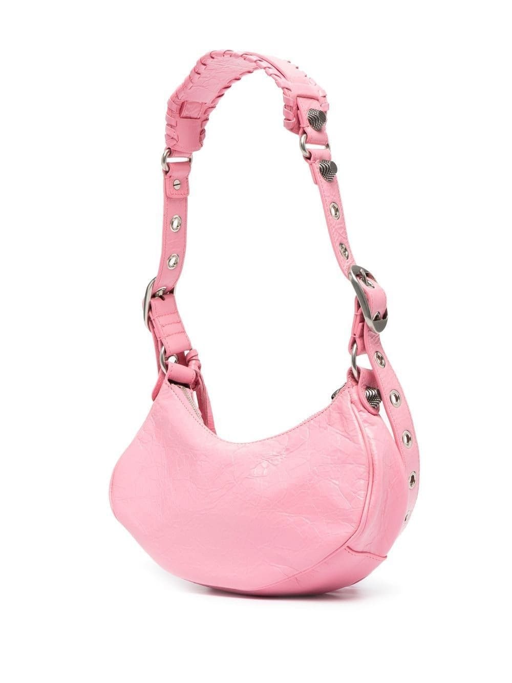 light pink lambskin cracked effect silver-tone stud detailing ruched detailing logo tag silver-tone hardware adjustable shoulder strap internal logo patch full lining detachable coin purse POSITIVELY CONSCIOUS: We've partnered with Good On You — an ethical agency that rates how sustainably brands perform across various people, planet and animal welfare criteria. This product comes from a Conscious brand that performs well in relation to their impact on the planet, for example ensures the use of materials that limit the amount of chemicals, water and wastewater involved in production processes.