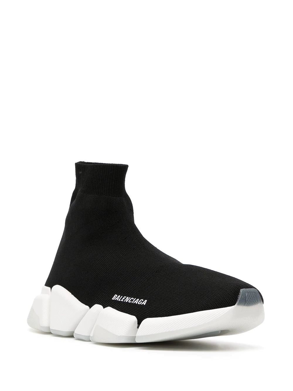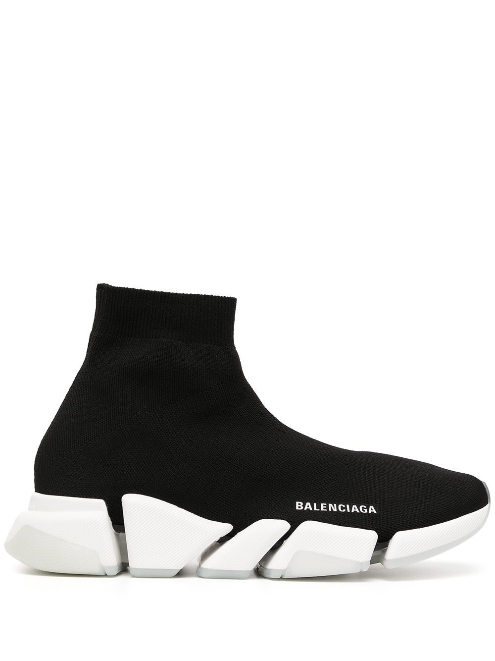 Comfort leads the way in the practical design of these Speed 2.0 sneakers. An iconic Balenciaga silhouette, this pair is designed with a flexible knitted upper that allows an easy pull-on. A sectioned rubber sole adds lightness and range of motion to this black-hued design.