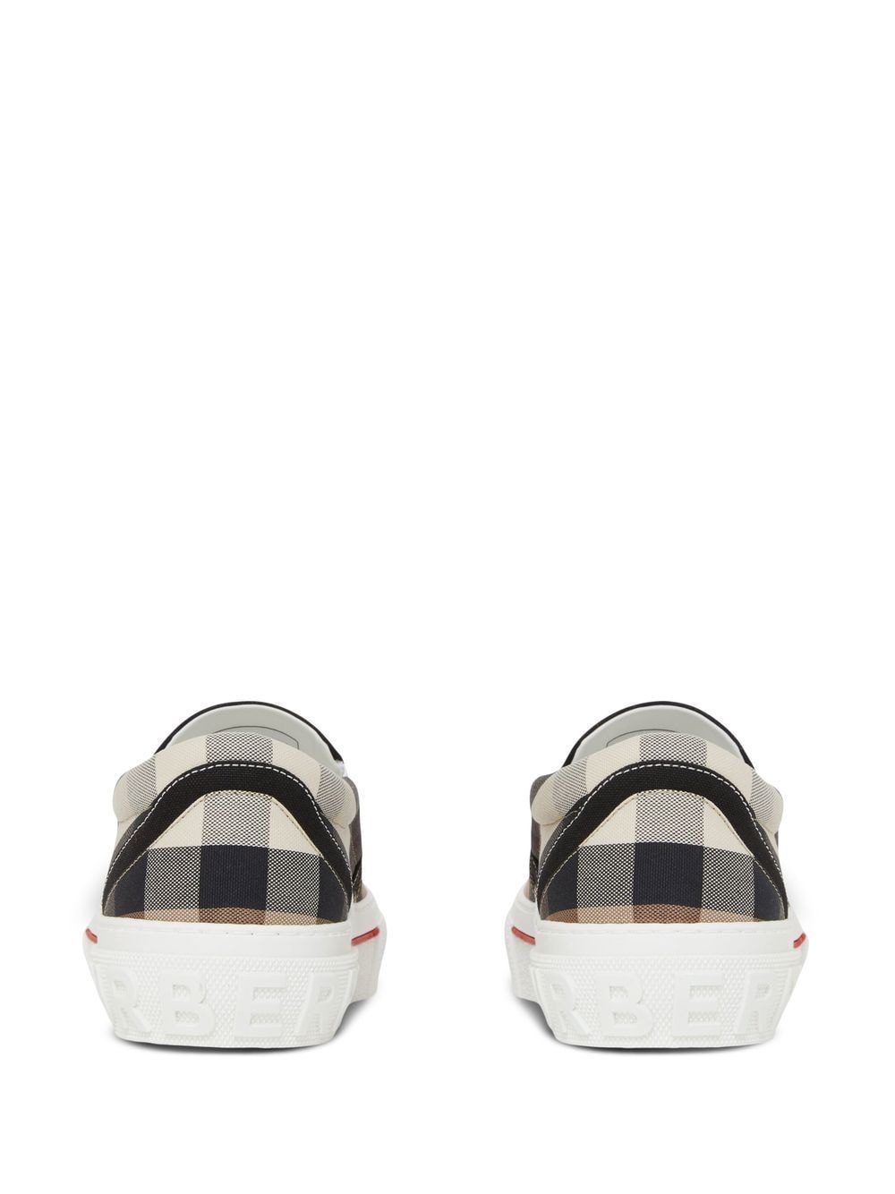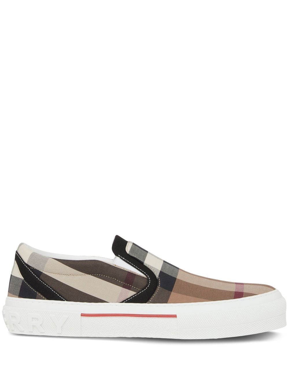 Burberry's slip-on sneakers spotlight the brand's archival checked pattern that debuted on the linings of the label's iconic trench coats. They rest on chunky rubber soles.