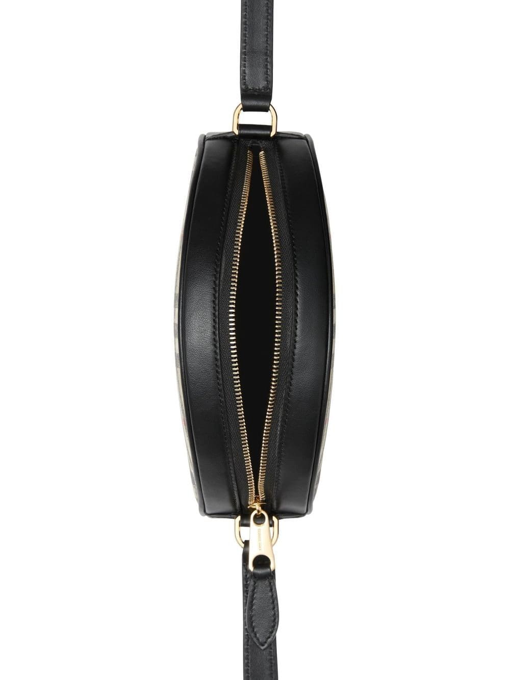 archive beige/black cotton blend/calf leather circular design Vintage Check pattern single shoulder strap top zip fastening main compartment