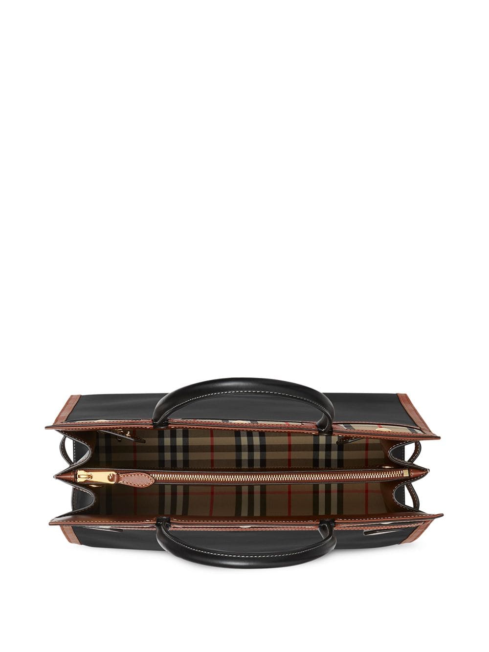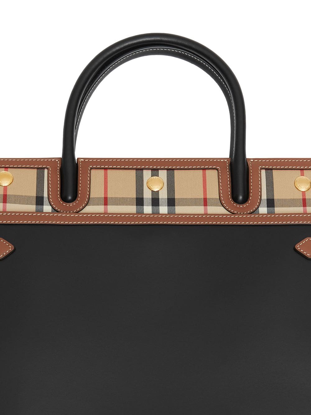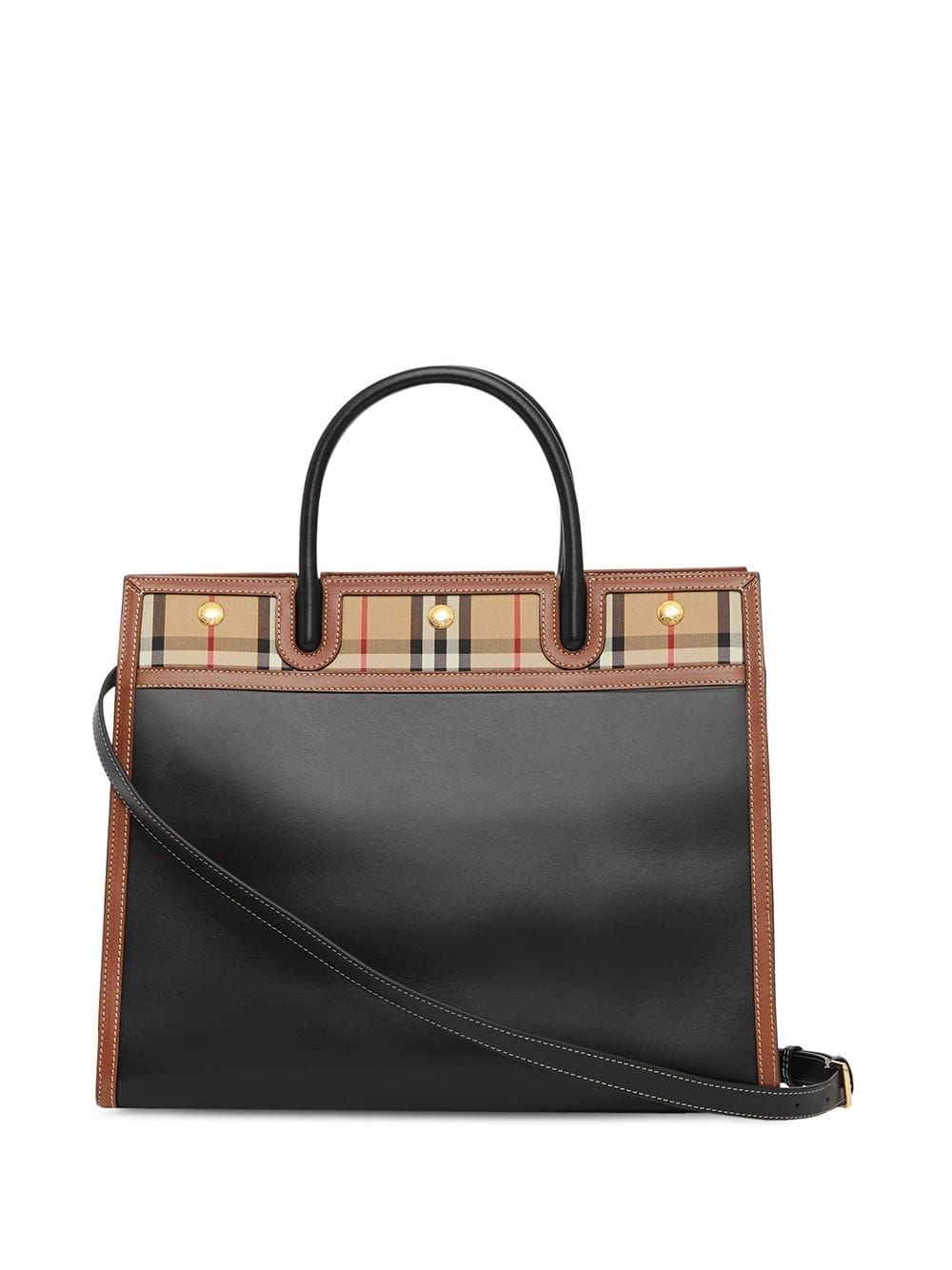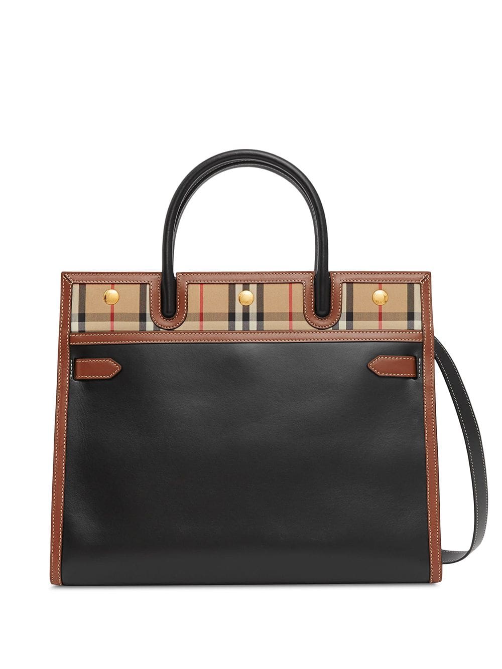 Mini bags are having a moment and there's no way you can escape from it. Crafted from supple leather, this mini two-handle Title bag from Burberry is for essentials only, but still there's a lots of space inside.Go mini or go home! Featuring round top handles, a detachable and adjustable shoulder strap, an interior zipped compartment and a check pattern.