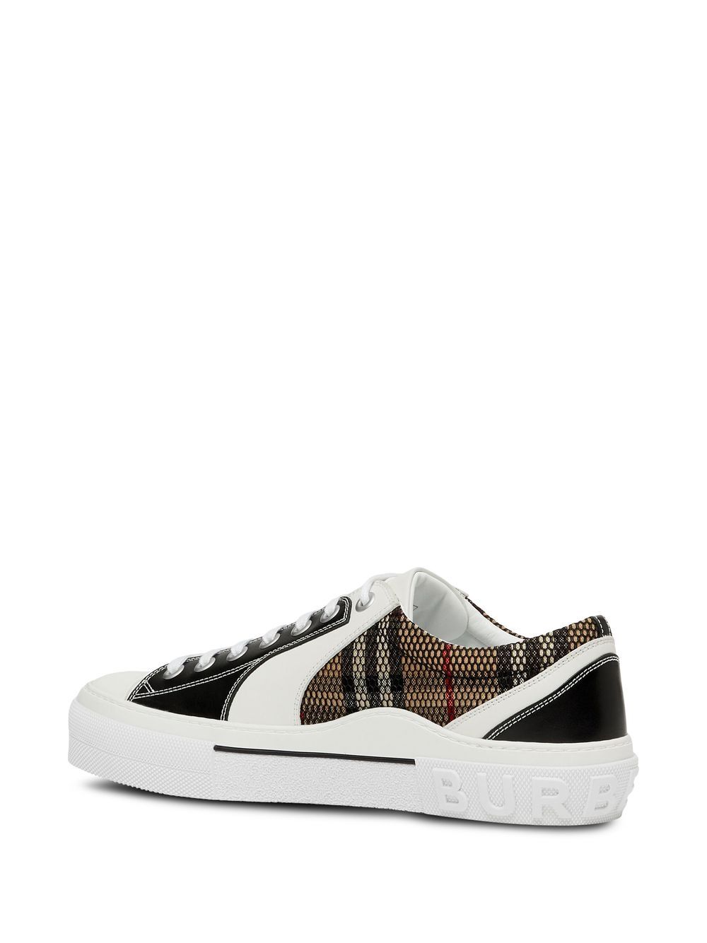 white/multicolour cotton/calf leather Vintage Check pattern colour-block panelled design mesh detailing round toe front lace-up fastening logo patch at the tongue contrast stitching branded insole flat rubber sole