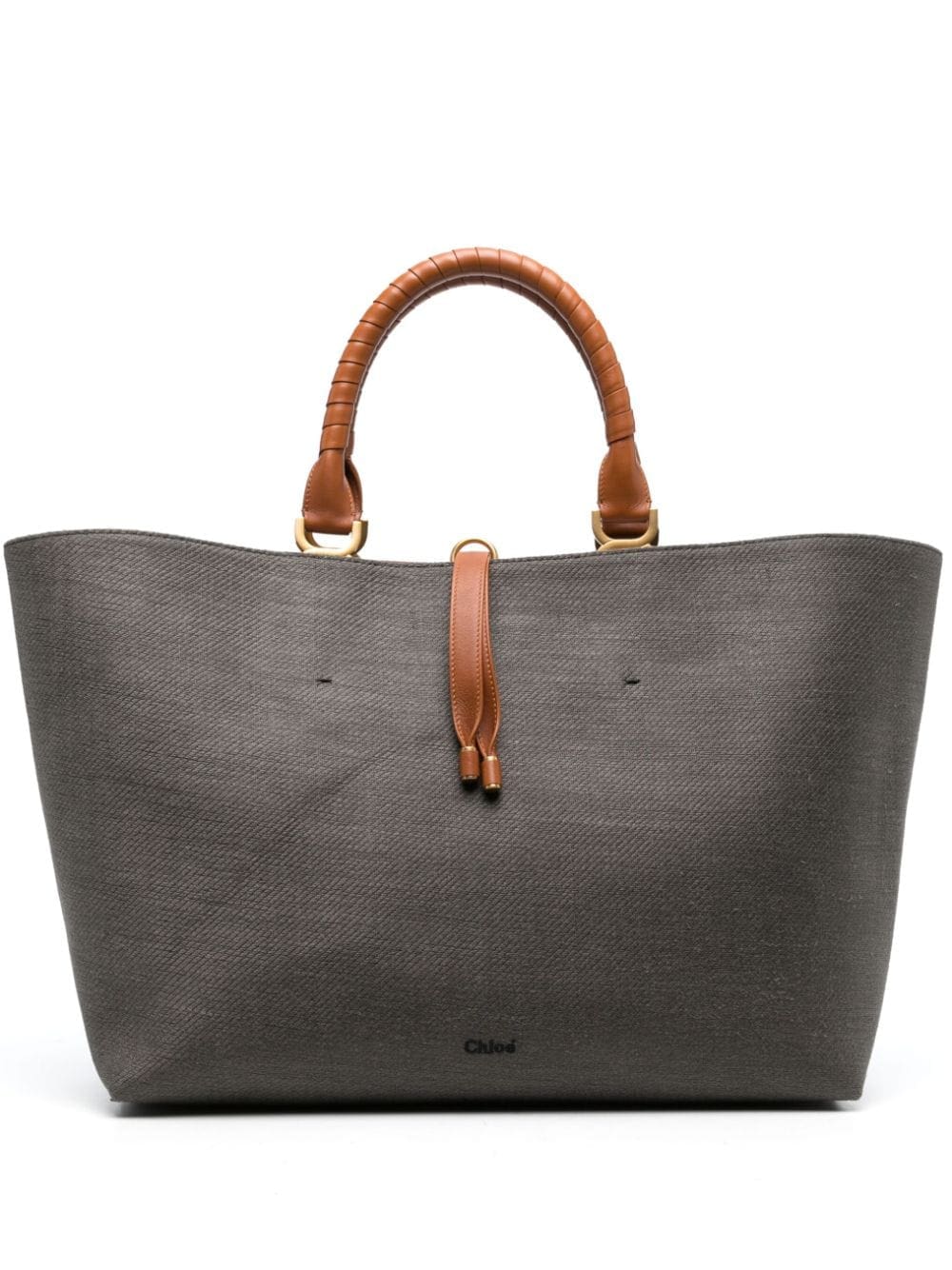 Chloé's vertical project introduces the Marcie tote bag which takes inspiration from 70's folk aesthetic. The spacious tote bag is crafted from linen and features braided leather handles and tassel closures for a timeless look.