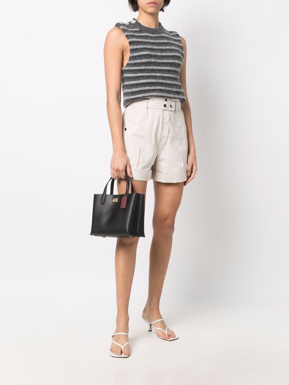 tag-detail leather tote bag