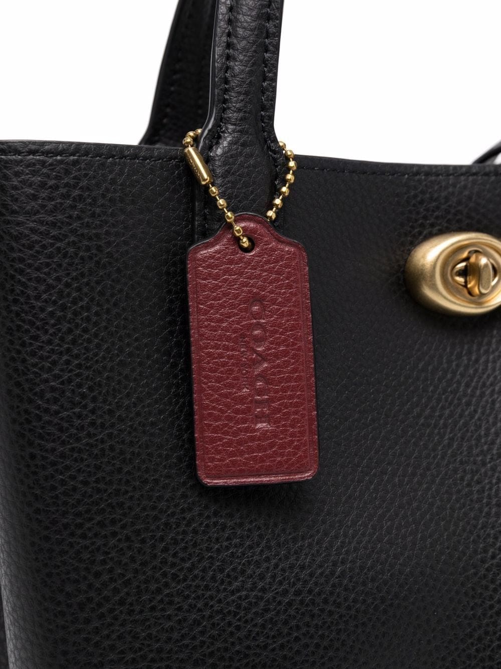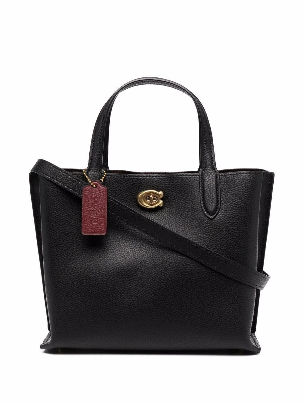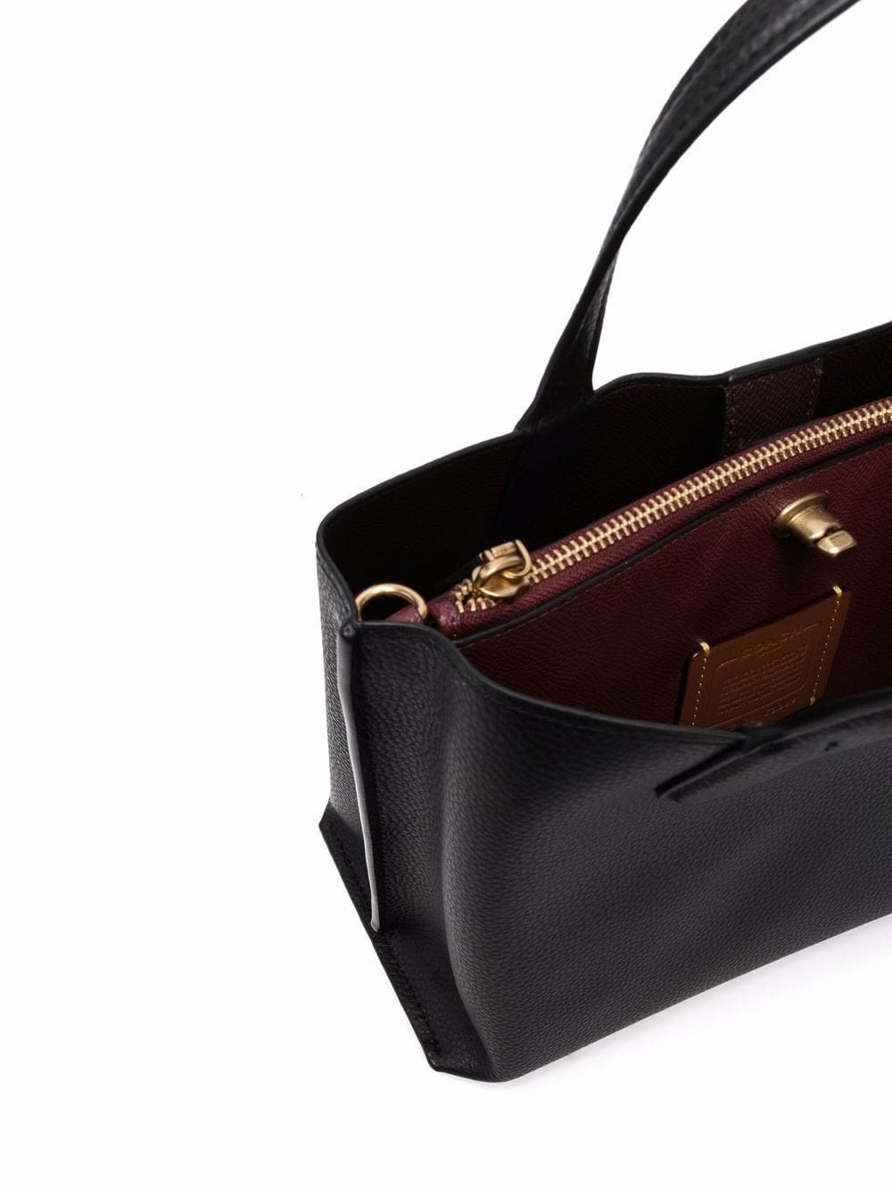 jet-black/wine-red calf leather leather tag two top handles main compartment gold-tone hardware
