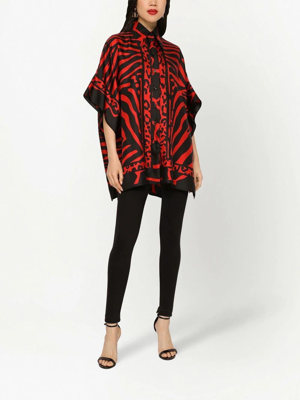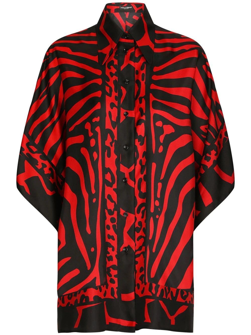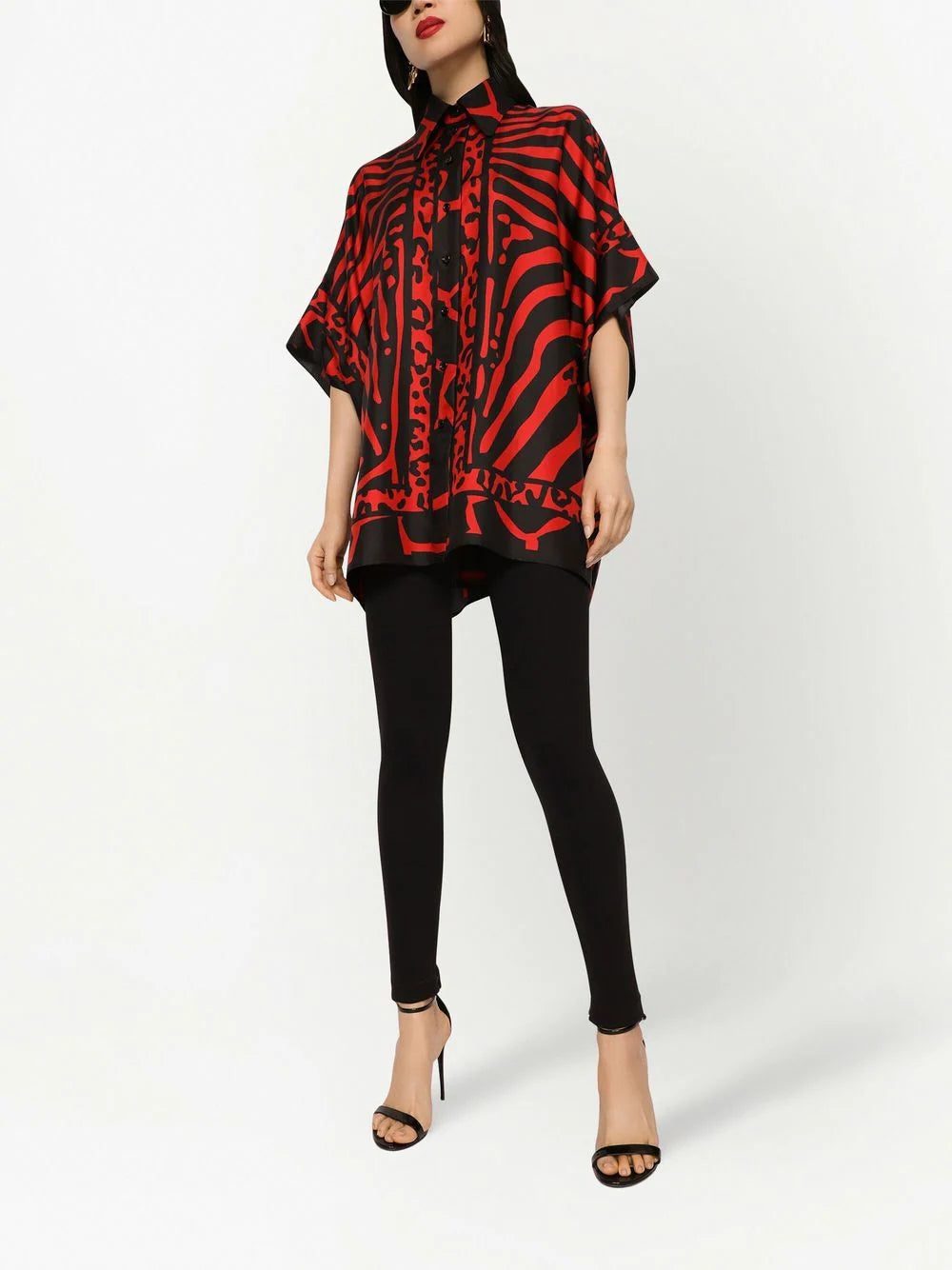 Channelling Dolce & Gabbana's penchant for animal motifs, this draped buttoned blouse from the brand's SS23 collection is crafted in Italy from delicate silk and adorned with a bold red and black motif throughout.