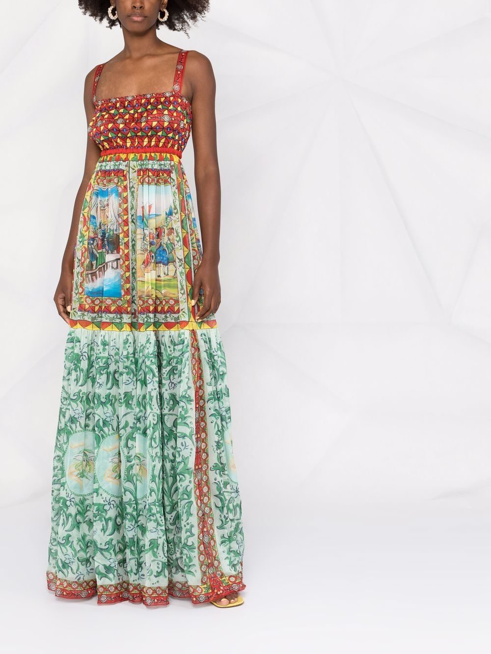 Dolce & Gabbana's Carretto print celebrates the traditional Sicilian horse drawn cart known as the Carretto Siciliano and decorates the entirety of this soft silk chiffon dress. Fabricated in Italy, the sleeveless design features an elasticated waistband and lightweight construction.