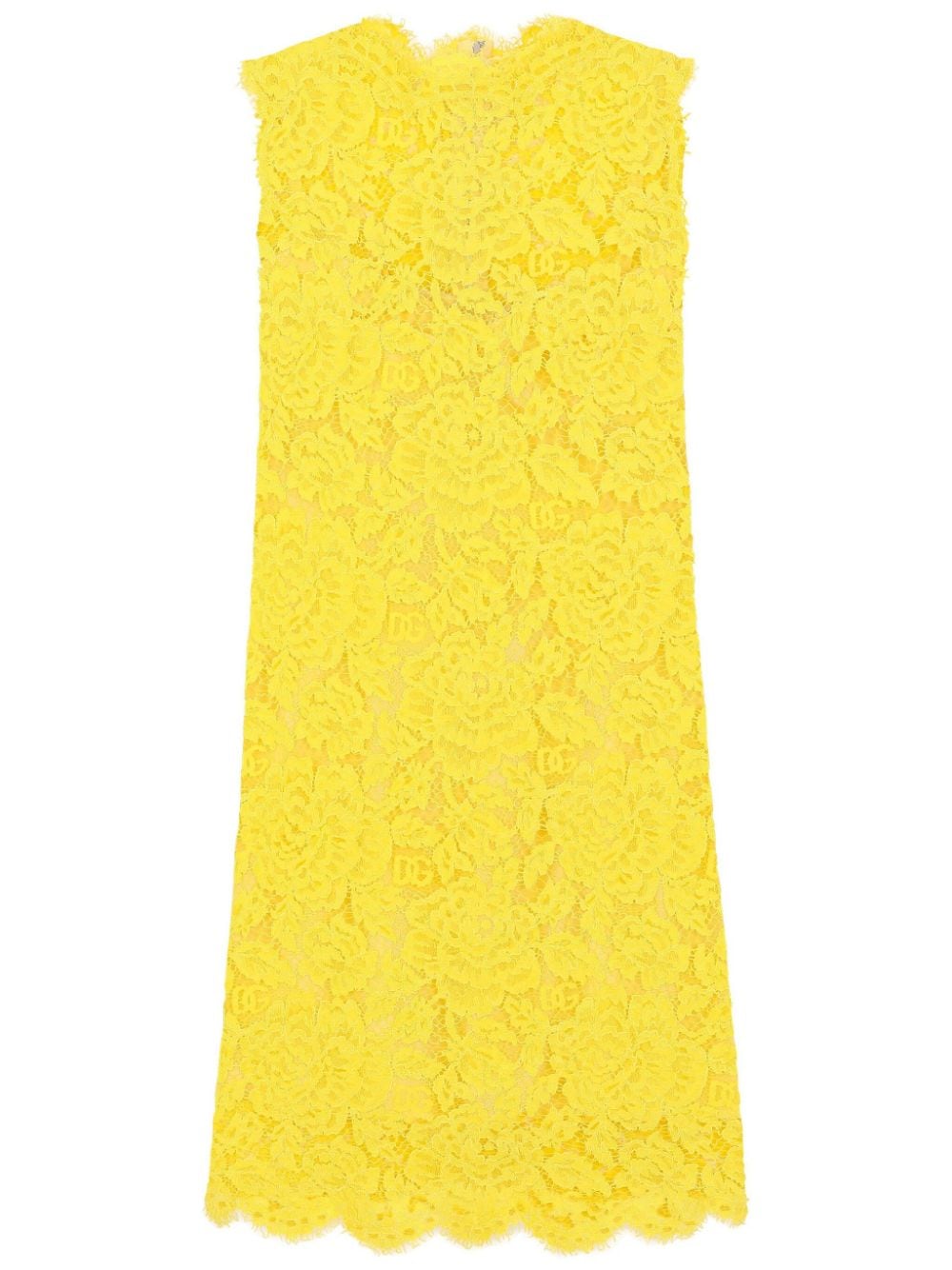 Evoking a romantic look, this lemon-yellow minidress by Dolce & Gabbana is made from corded floral lace. It's cut to a simple A-line silhouette.