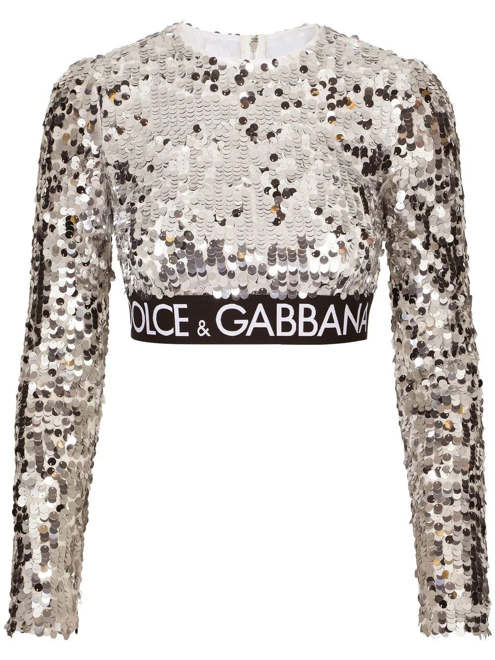 Dolce & Gabbana's signature bold approach to opulence is showcased in this cropped top from the AW22 collection through all-over sequin embellishment. Alongside logo-tape detailing, the garment has a glamorous yet contemporary feel.