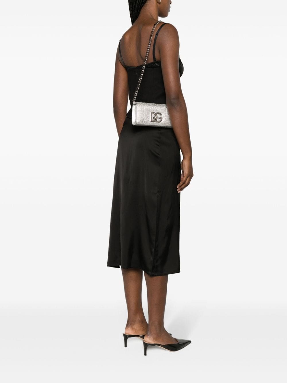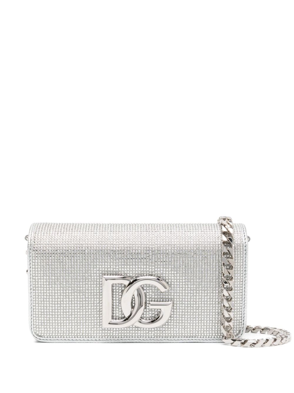 A bold mix of texture and embellishment, this Dolce & Gabbana clutch bag is crafted from metallic silver snakeskin-effect leather and encrusted with scores of light-catching crystals. A silver-tone monogram plaque marks its origins.