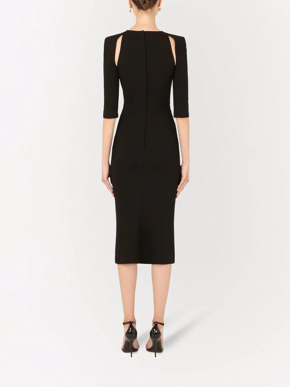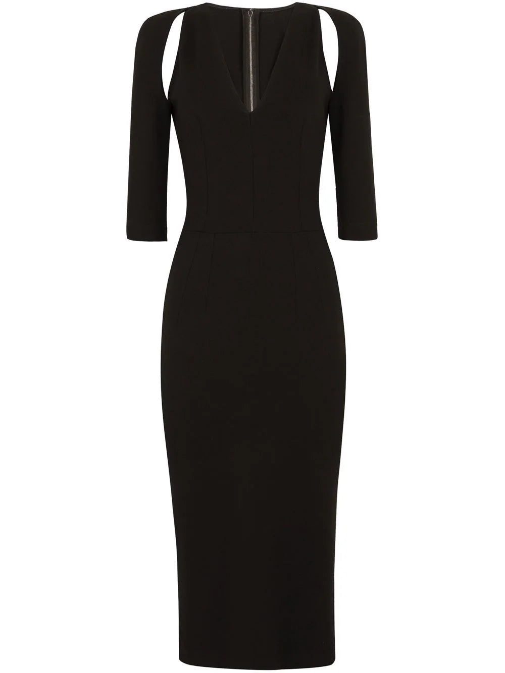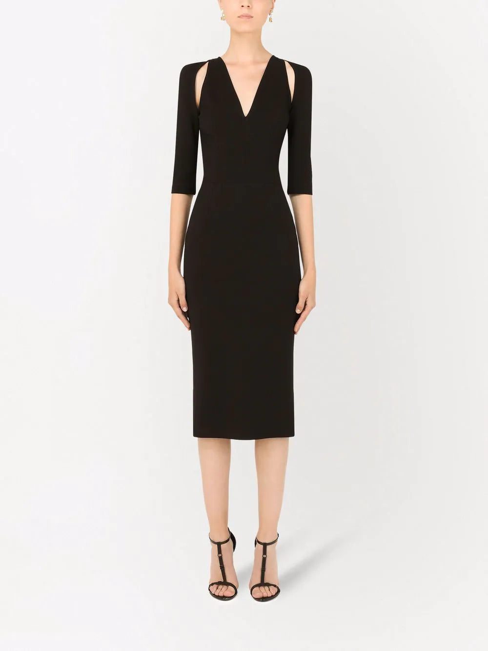 Black cut-out midi dress from DOLCE & GABBANA featuring cut-out detailing, half-length sleeves, V-neck, below-knee length and concealed rear zip fastening.