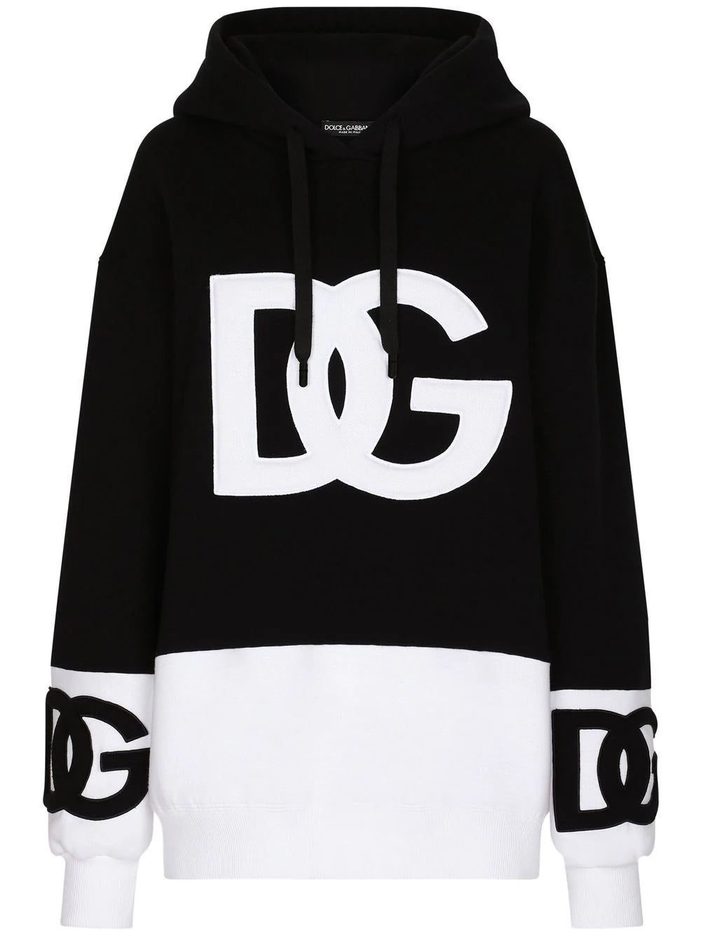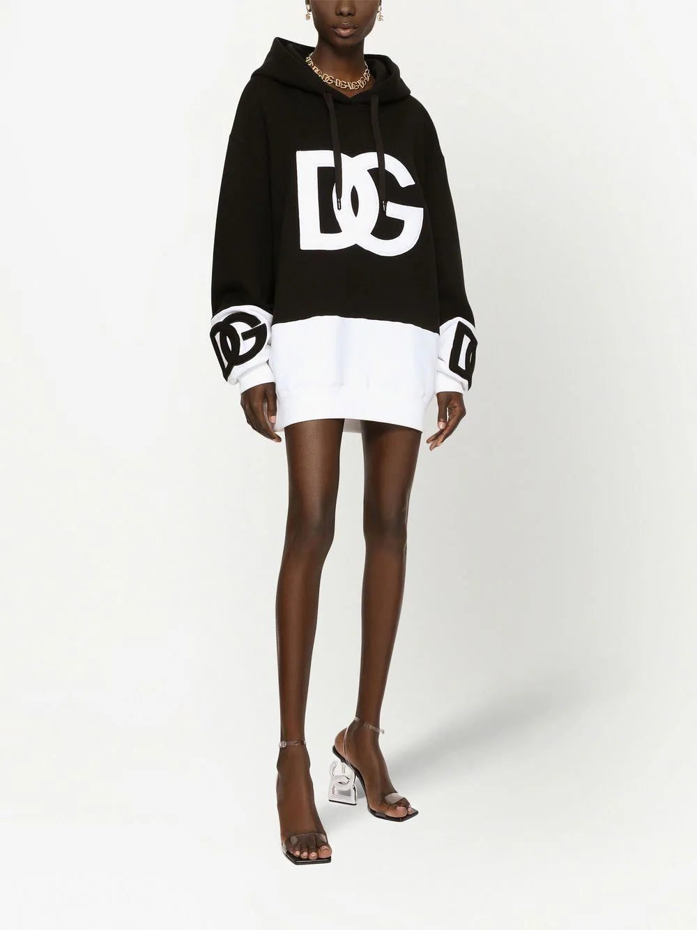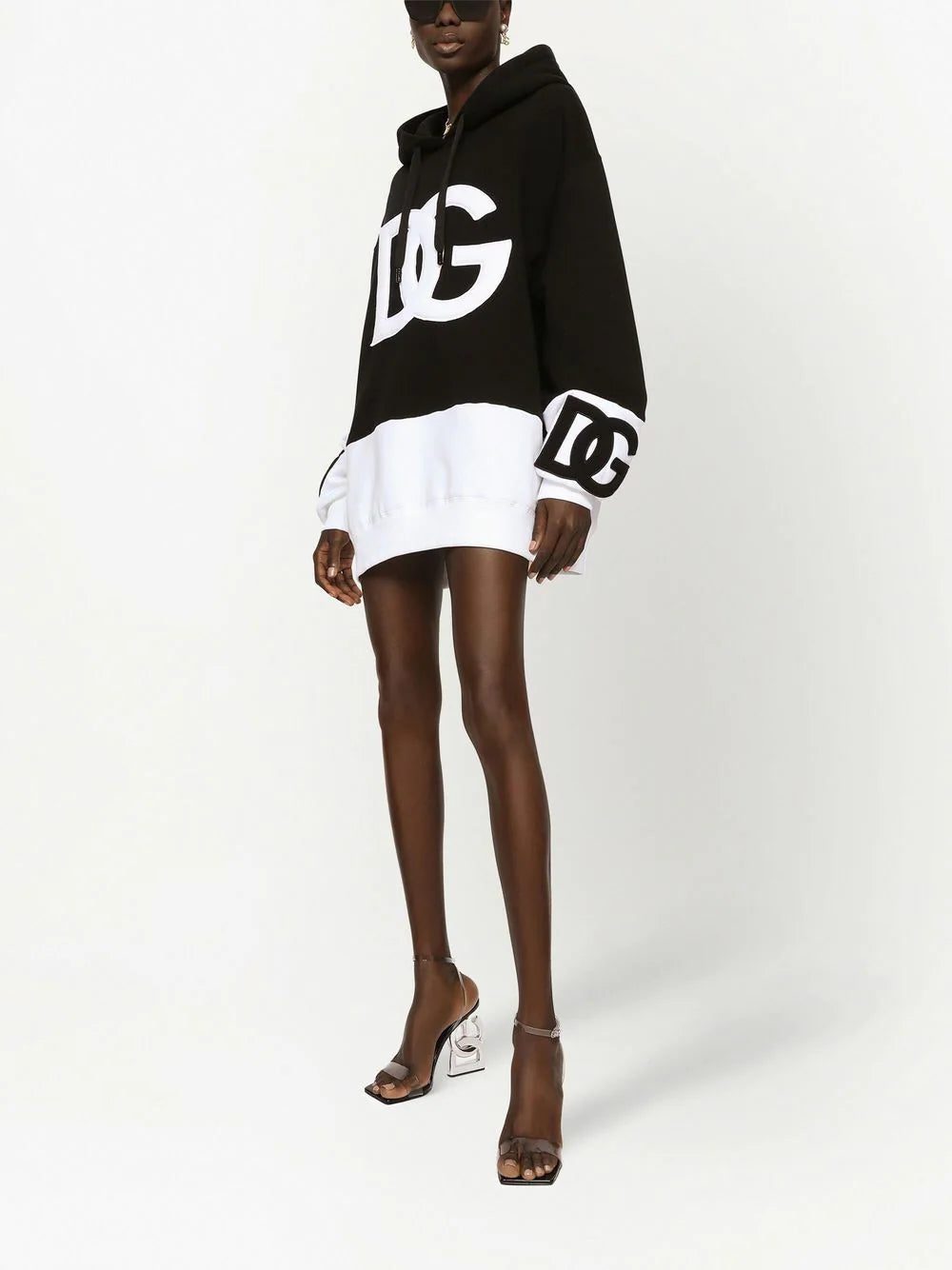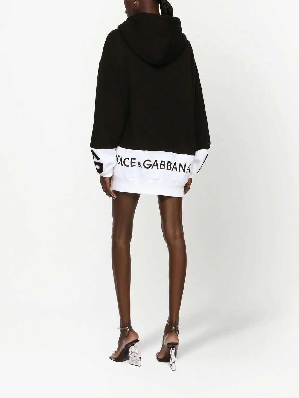 Made in Italy from soft cotton, this two-tone dress from Dolce & Gabbana is designed in a black and white iteration and cut for a mini length that seamlessly contrasts with its sportswear-inspired hoodie silhouette.