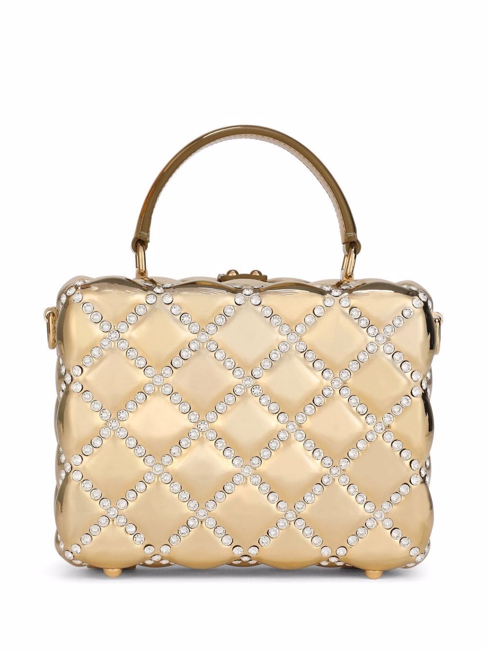 Made from smooth resin, this gold-tone Dolce Box bag from Dolce & Gabbana has a quilted effect and crystal embellishments.