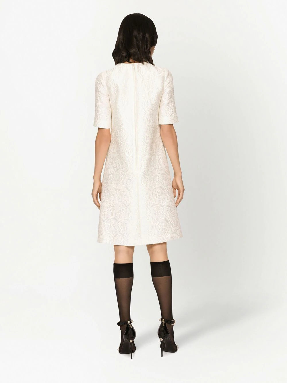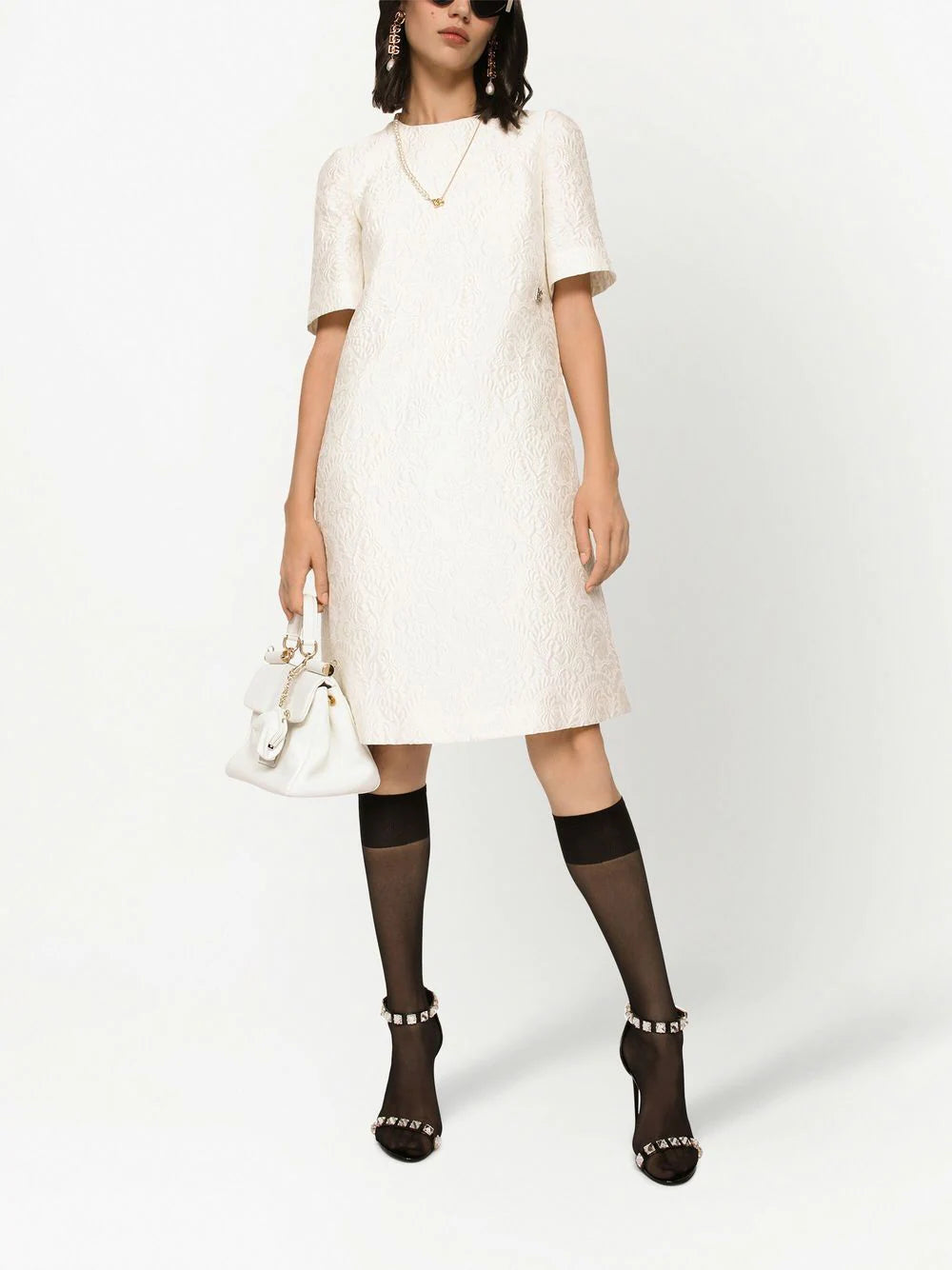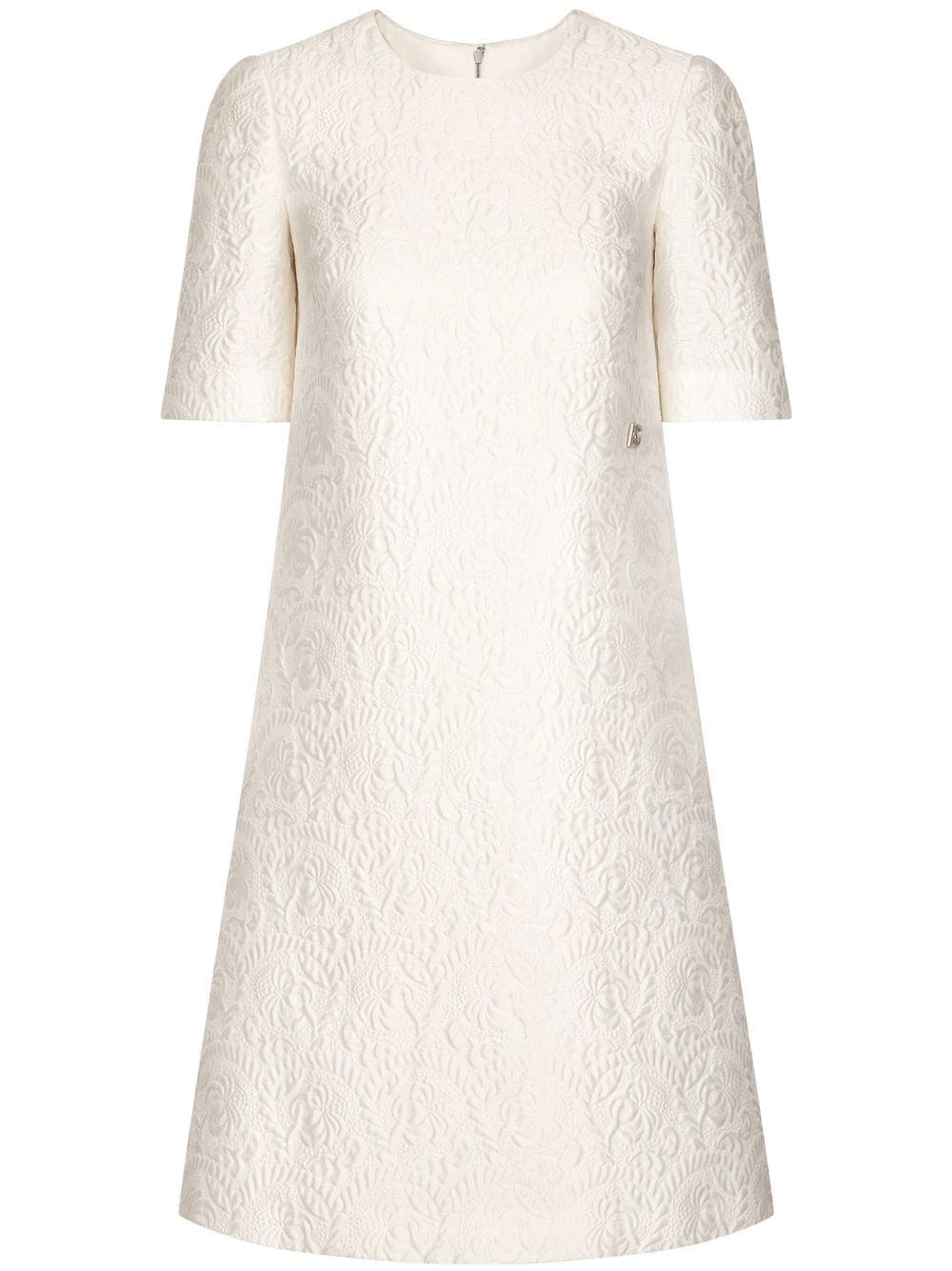 This dress from Dolce & Gabbana's SS23 edit channels the brand's bold take on garments thanks to its brocade effect. Rendered in a white colourway, this knee-length piece is embroidered with the brand's initials at the side.