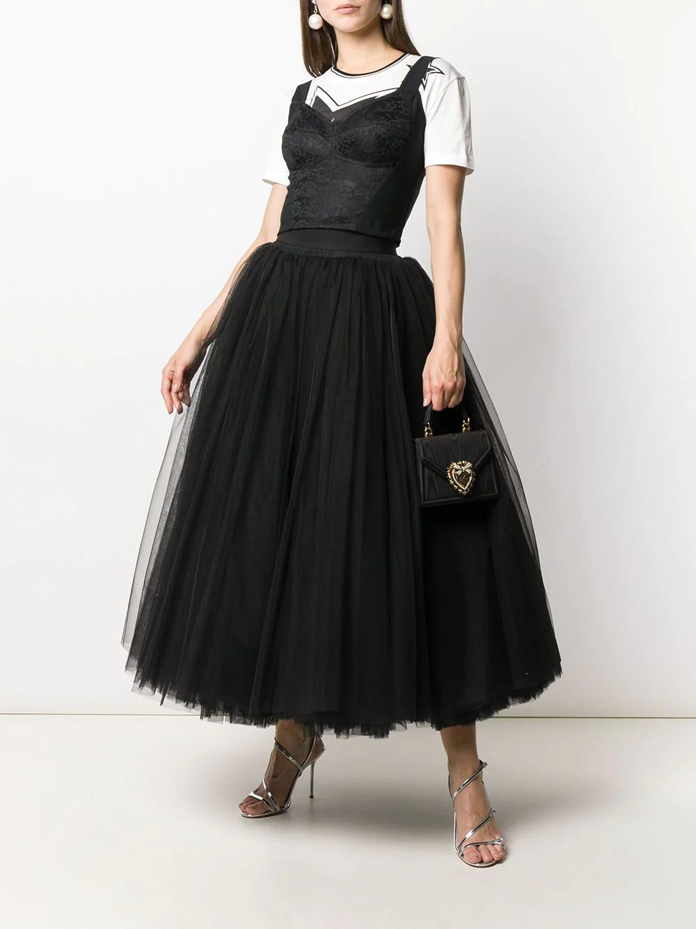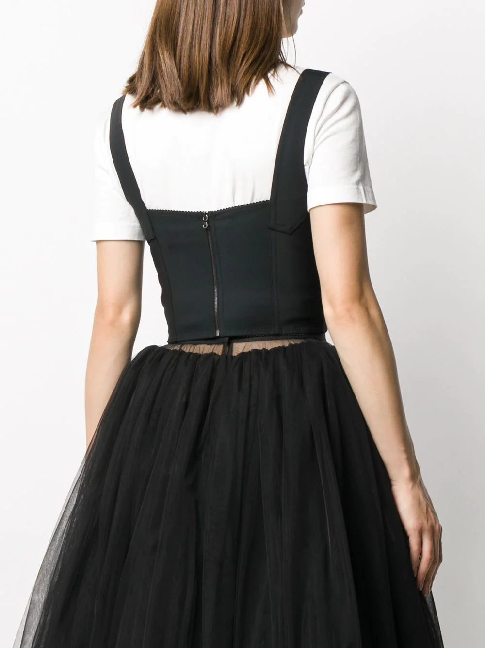 Keep it short and sweet. This black floral lace bustier top from Dolce & Gabbana is the way to go. What it lacks in length (definitely) makes up for in personality. Featuring a sweetheart neckline, a fitted silhouette, an open back, a floral lace pattern, a back zip fastening and shoulder straps.