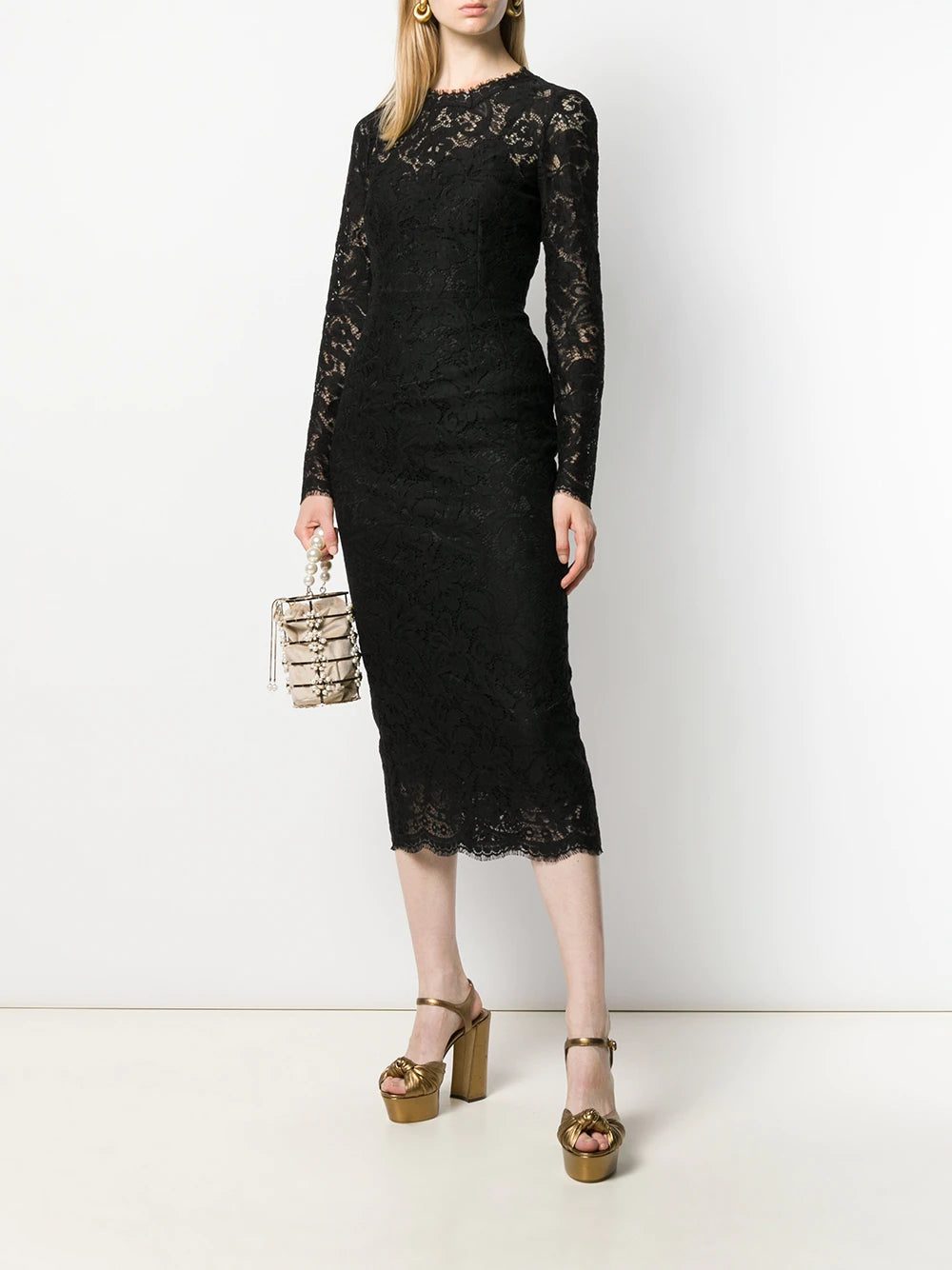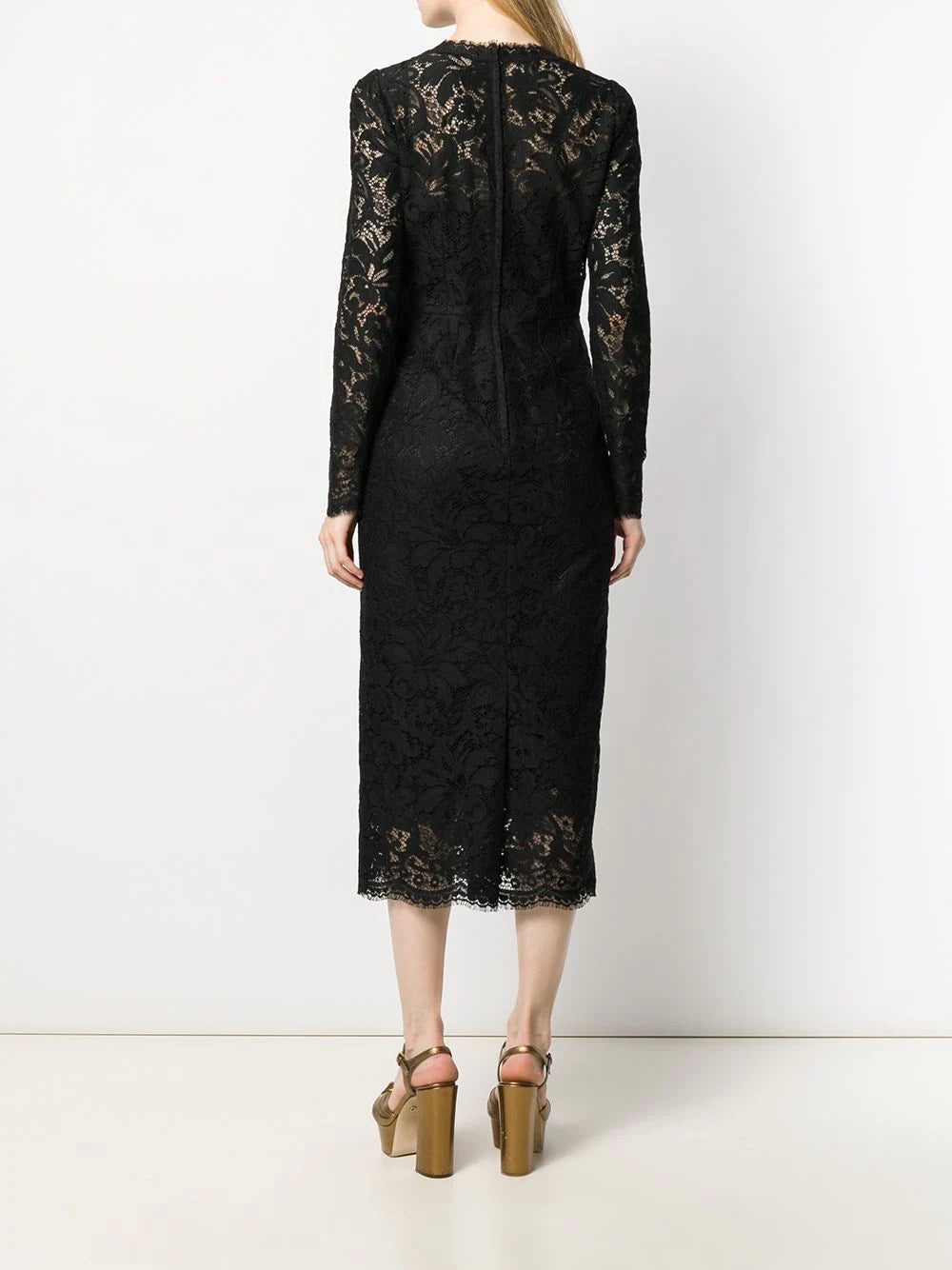 Dolce & Gabbana are the height of romanticism, femininity and Italian luxury. Along with bright colours and signature floral blooms, the designers behind the iconic brand are expert in fashioning timeless essentials for the woman of any age, as showcased with this black stretch cotton-silk blend floral lace midi dress. Featuring a round neck, long sleeves, a rear zip fastening, a fitted waist and a rear central vent.