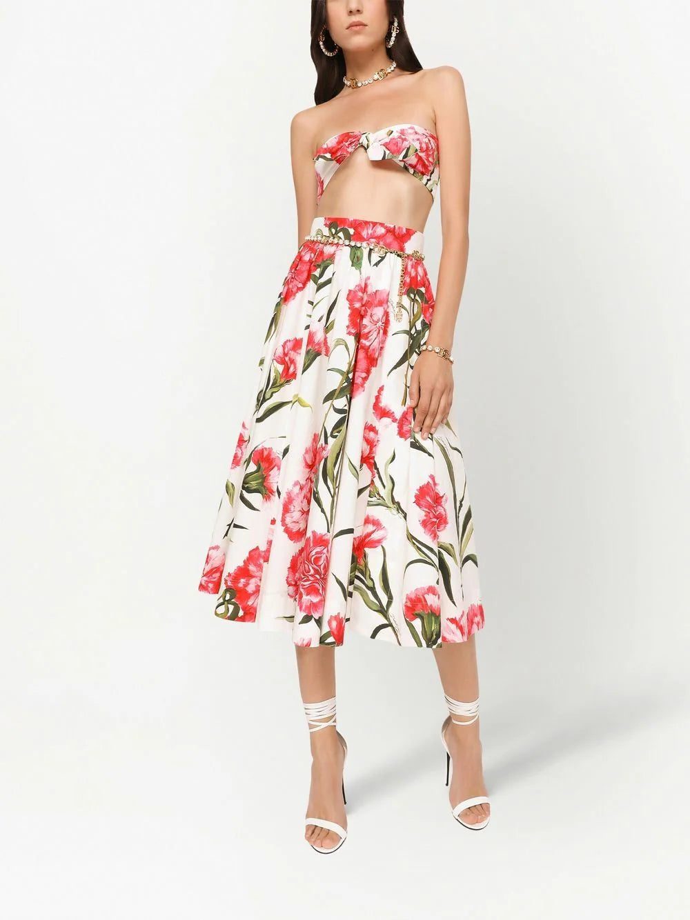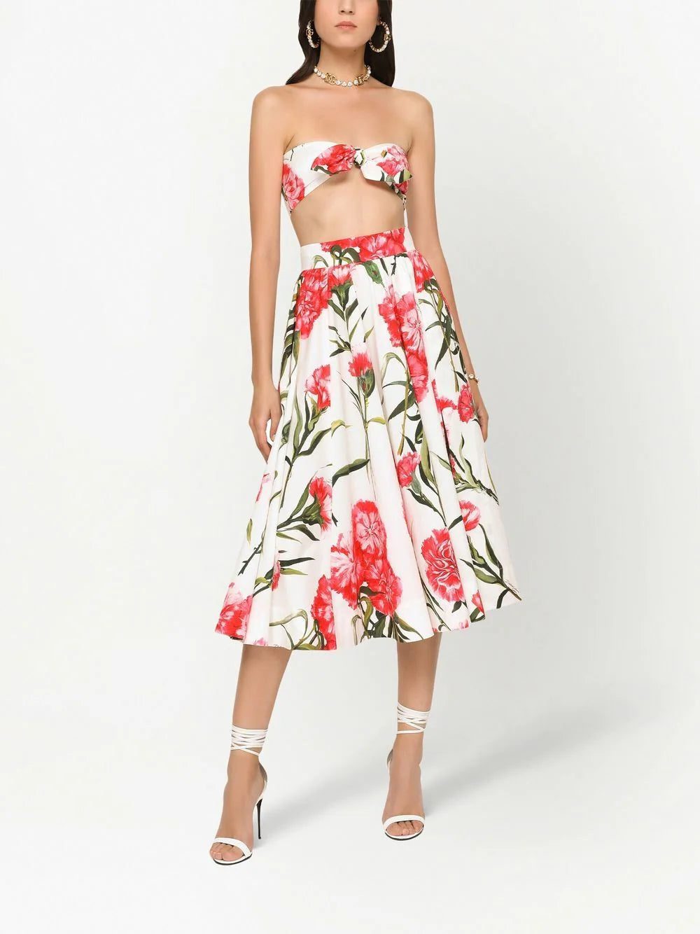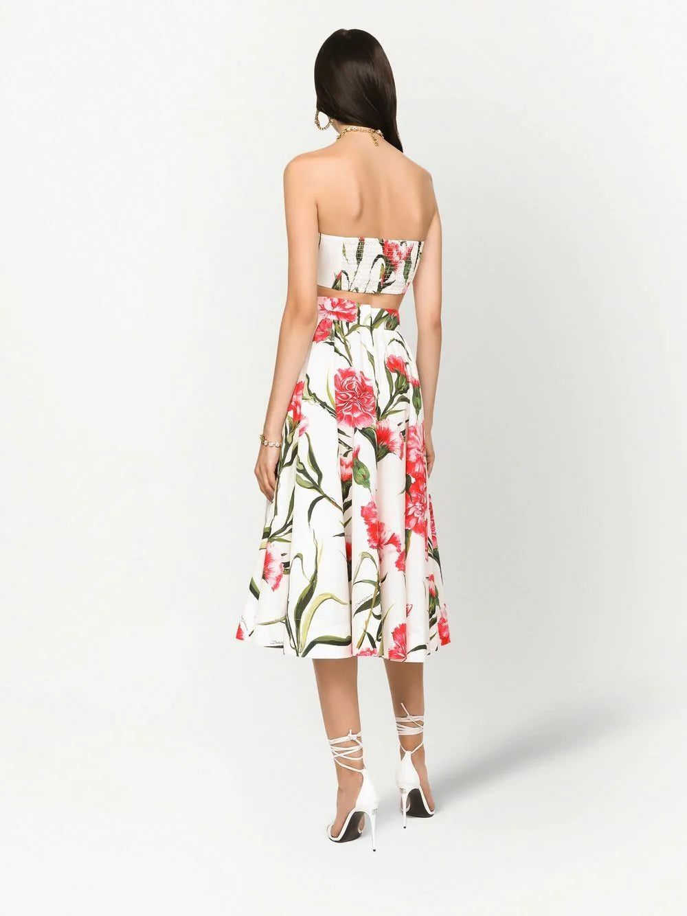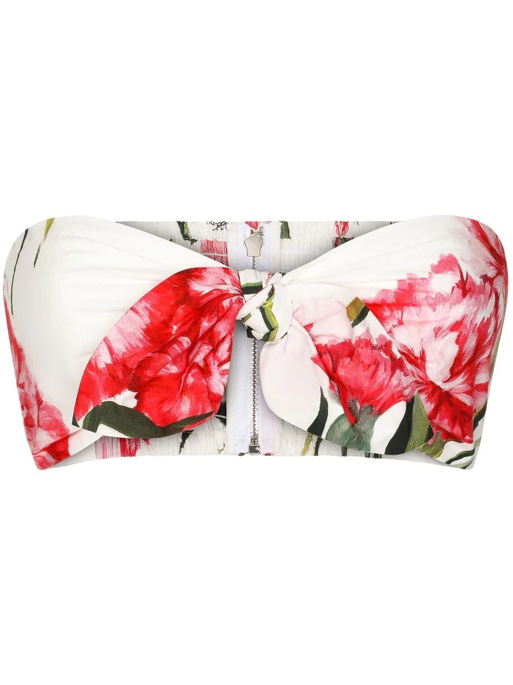 floral-print bandeau top from DOLCE & GABBANA featuring all-over floral print, front tie fastening, bandeau style, white/multicolour and cotton.