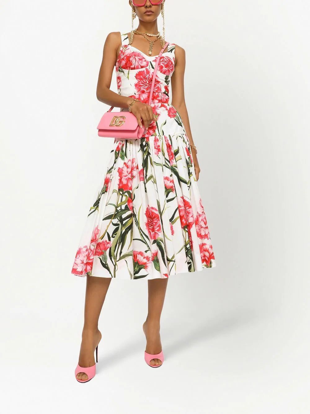floral-print bodice top from DOLCE & GABBANA featuring white/multicolour, cotton blend, all-over floral print, moulded cup, front zip fastening and cropped.