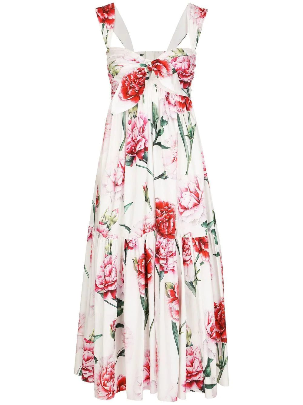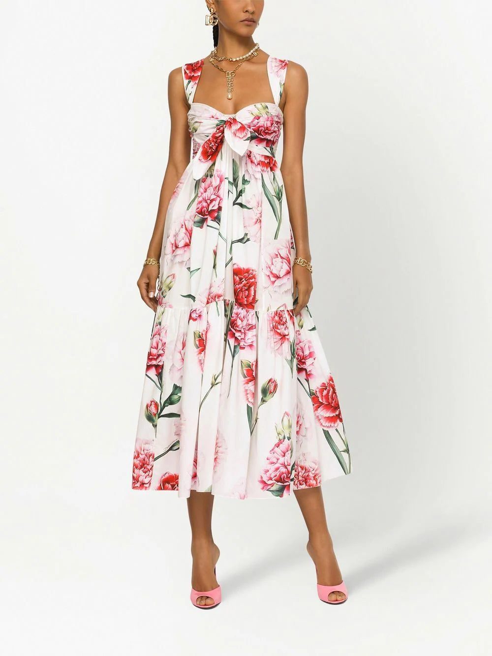 A striking floral print distinguishes this midi dress from Dolce & Gabbana's SS23 collection. The alluring print is hosted by a relaxed silhouette that boasts a sweetheart neckline and wide shoulder straps for a timeless appeal.