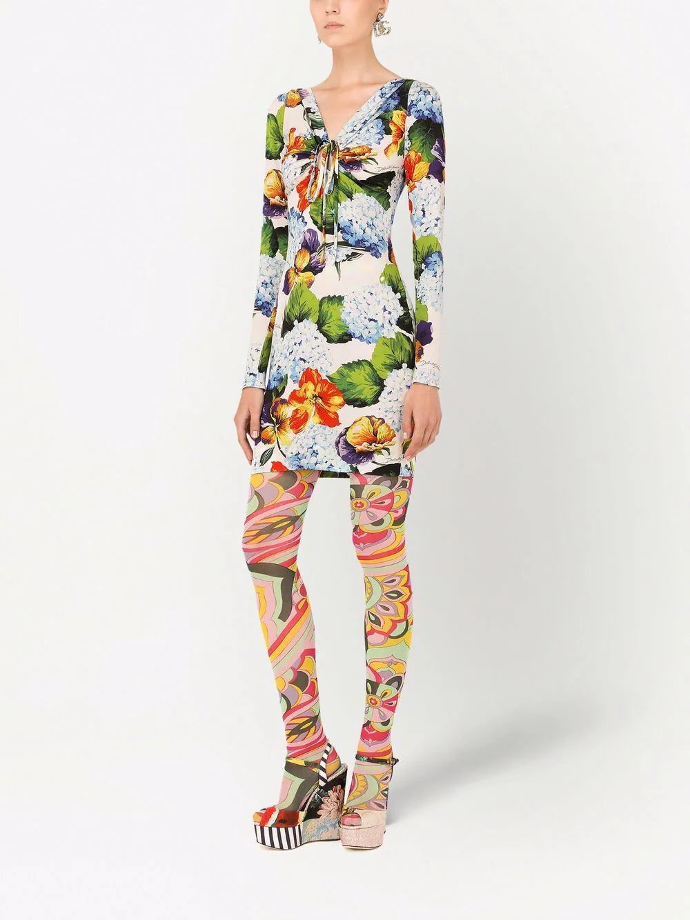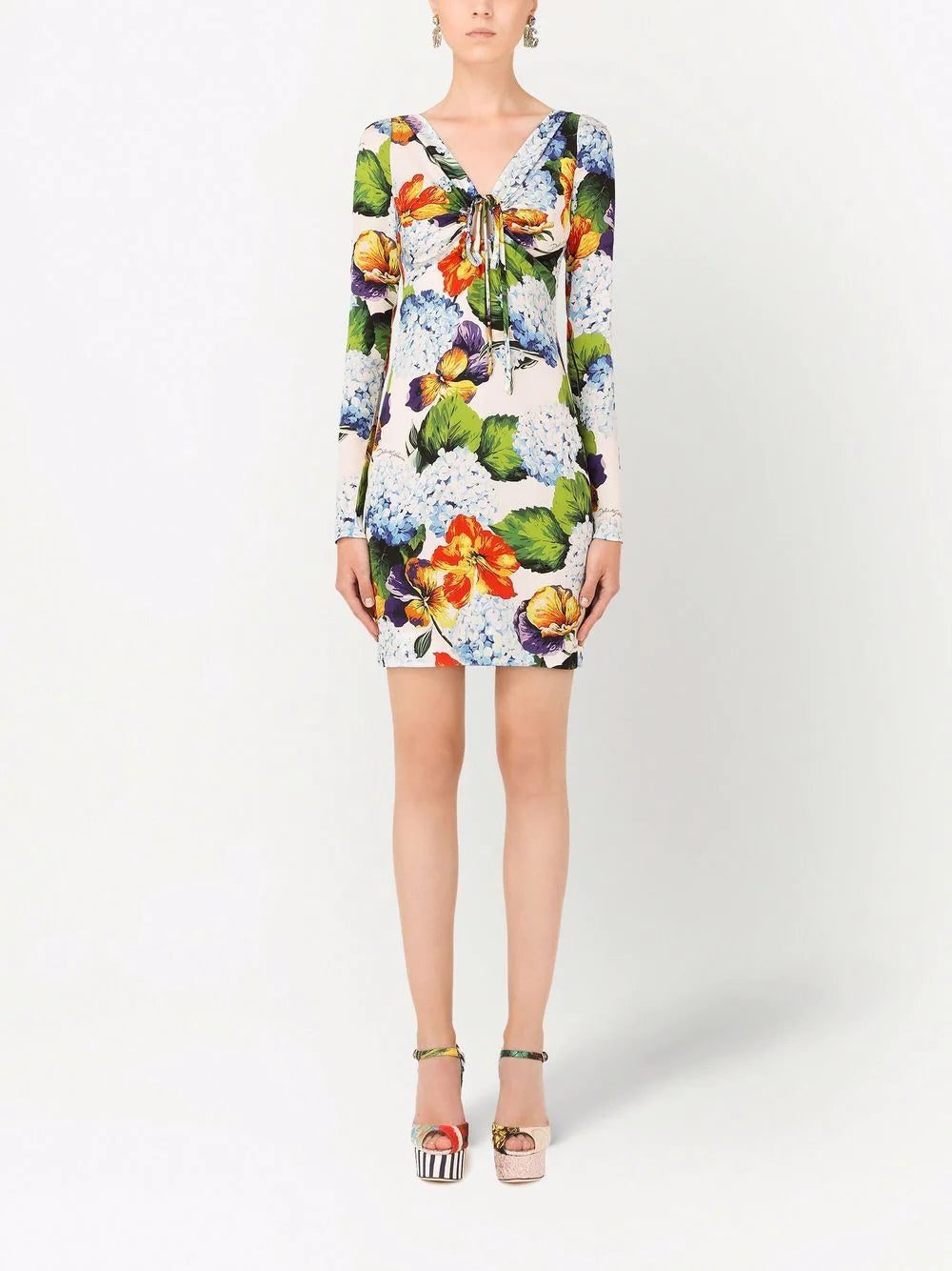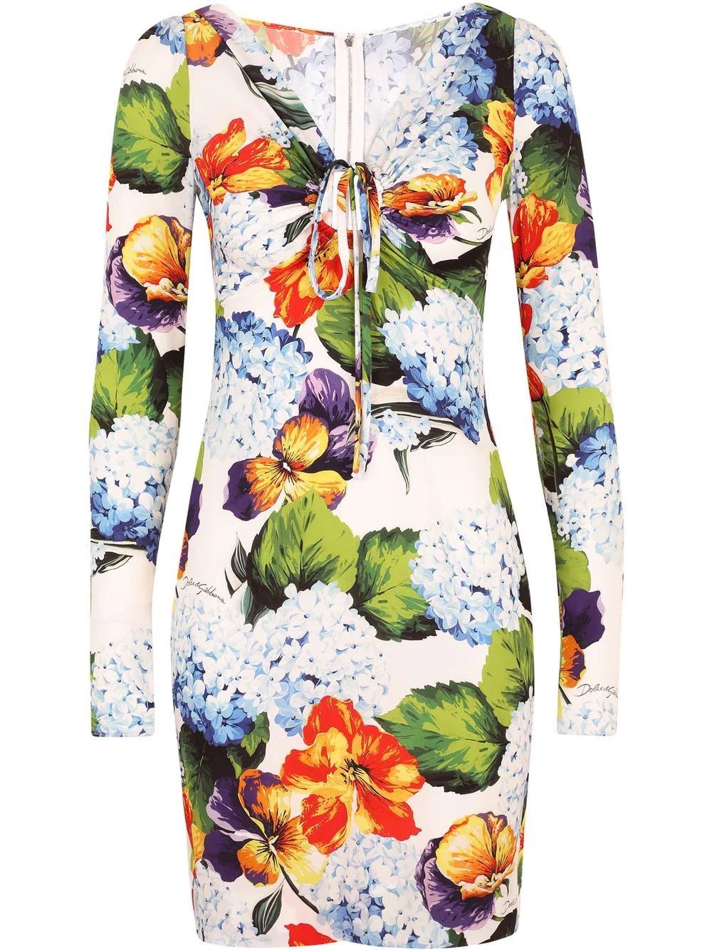 Nobody mixes colours quite like Dolce & Gabbana. The iconic design duo blends the power of Italian glamour with high-quality materials, creating bold and timeless pieces like this floral-print mini dress. Crafted from silk and highlighted with a front tie fastening.