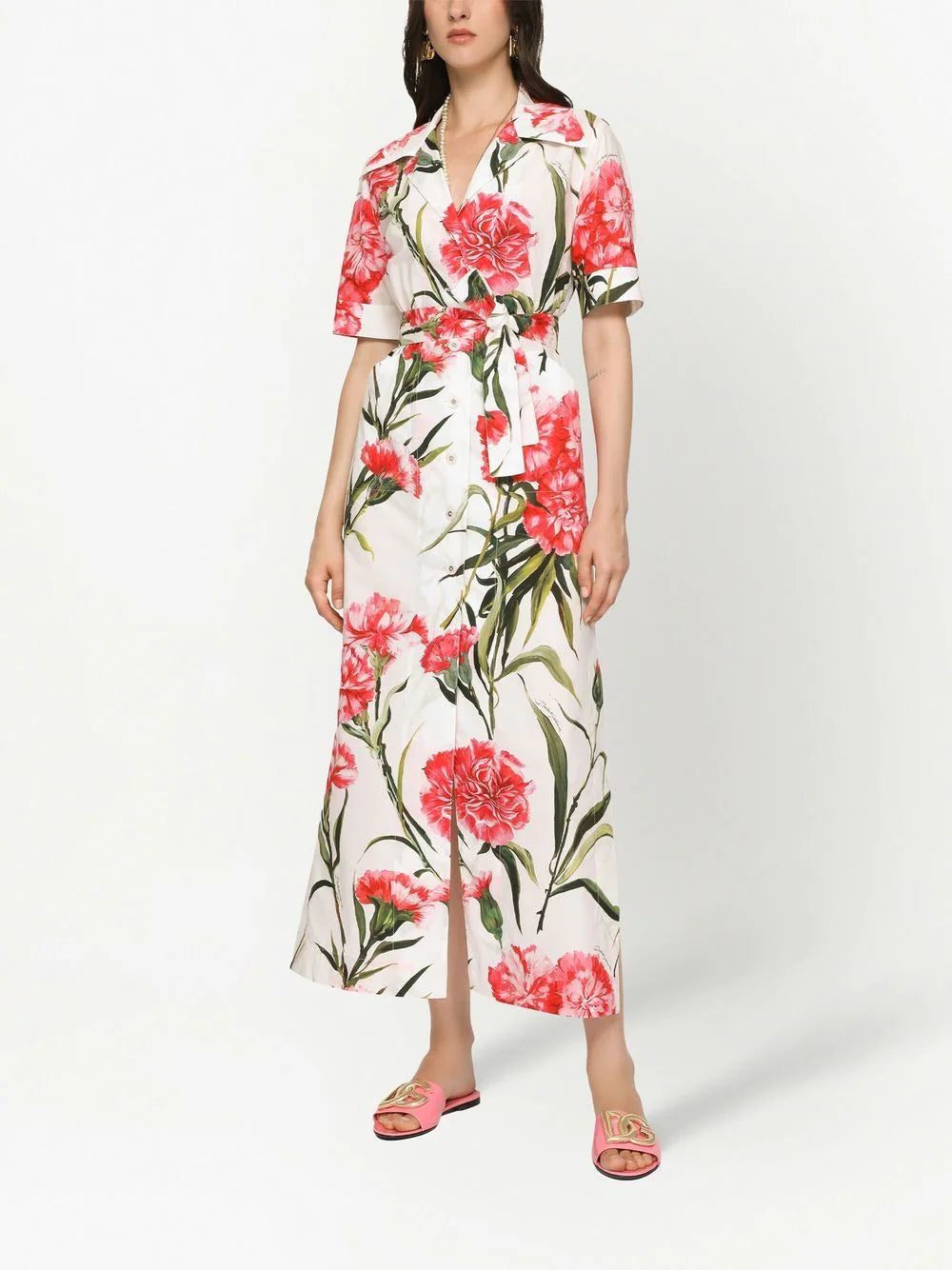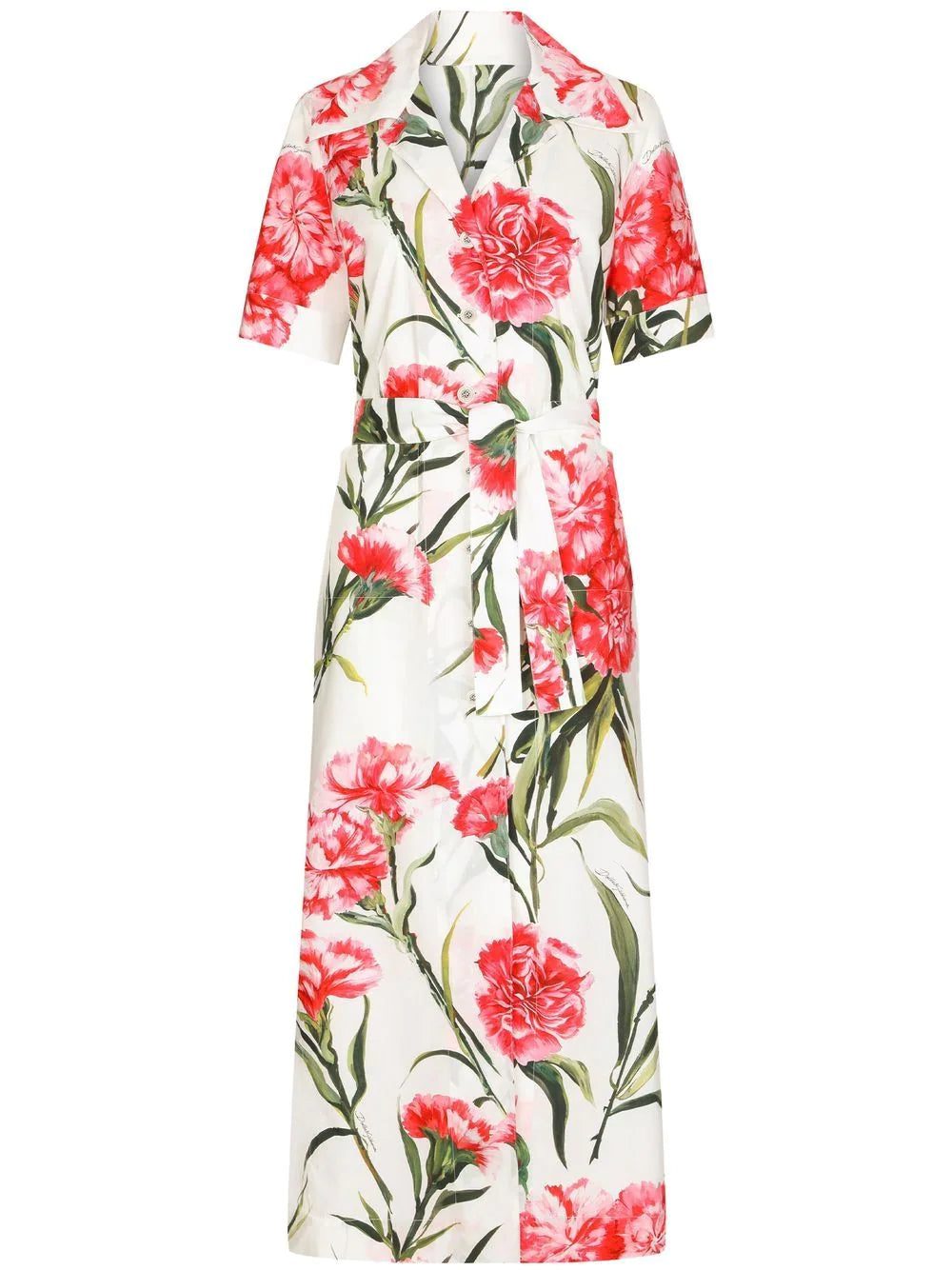 Dolce & Gabbana brings a whimsical twist to this short-sleeved shirt dress through the relaxed cotton construction and all-over floral print pattern.