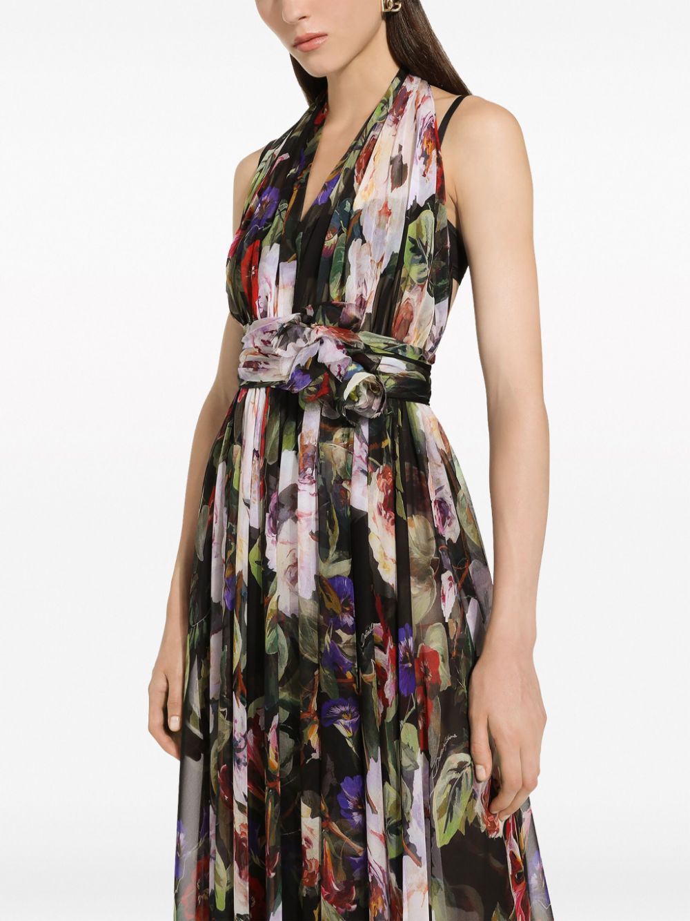 Dolce & Gabbana merges bold hues with striking florals to create this halterneck midi dress. It's cut from silk chiffon to a fluid silhouette accented with a floral appliqué at the waist and a voluminous pleated skirt.