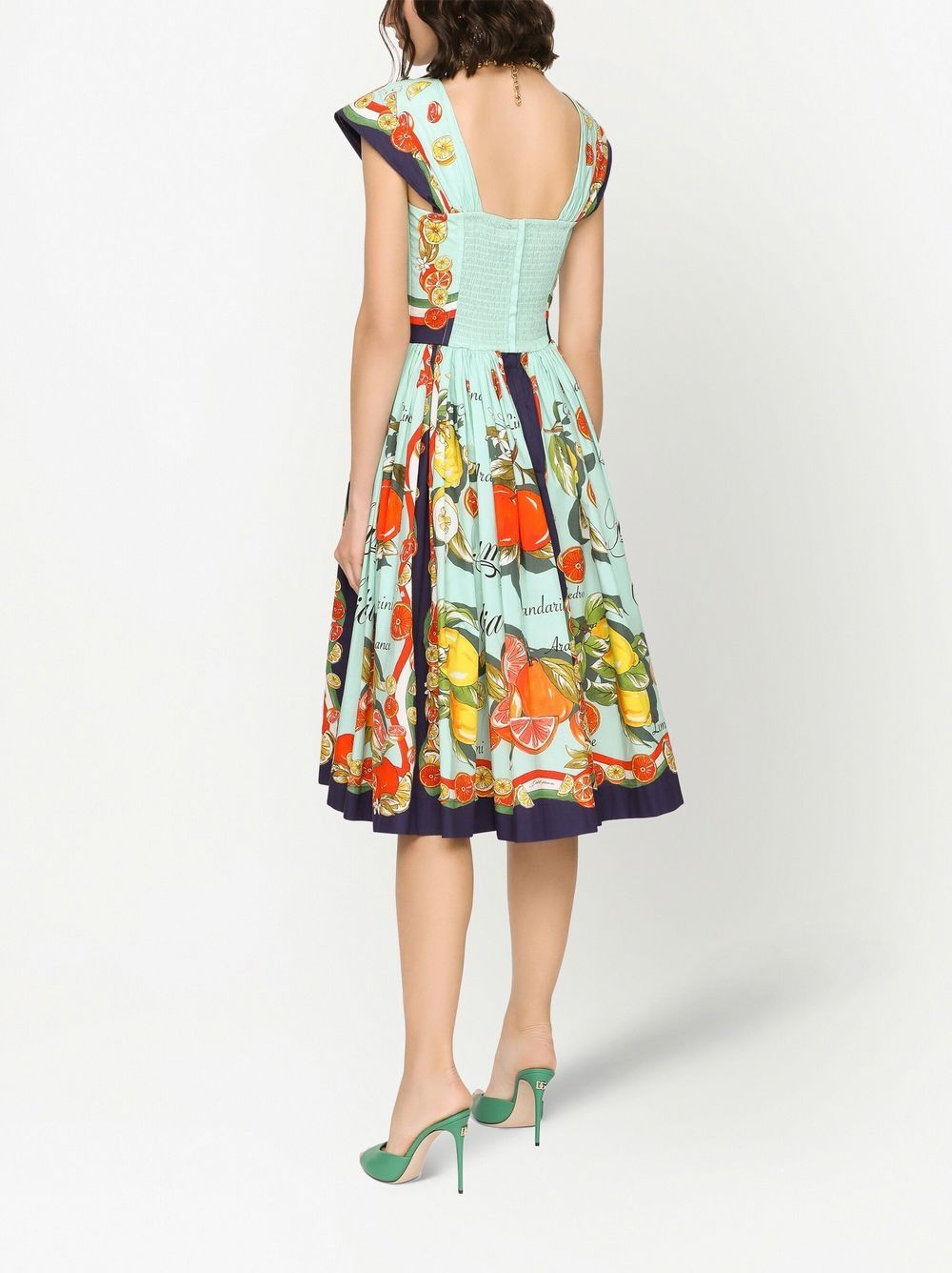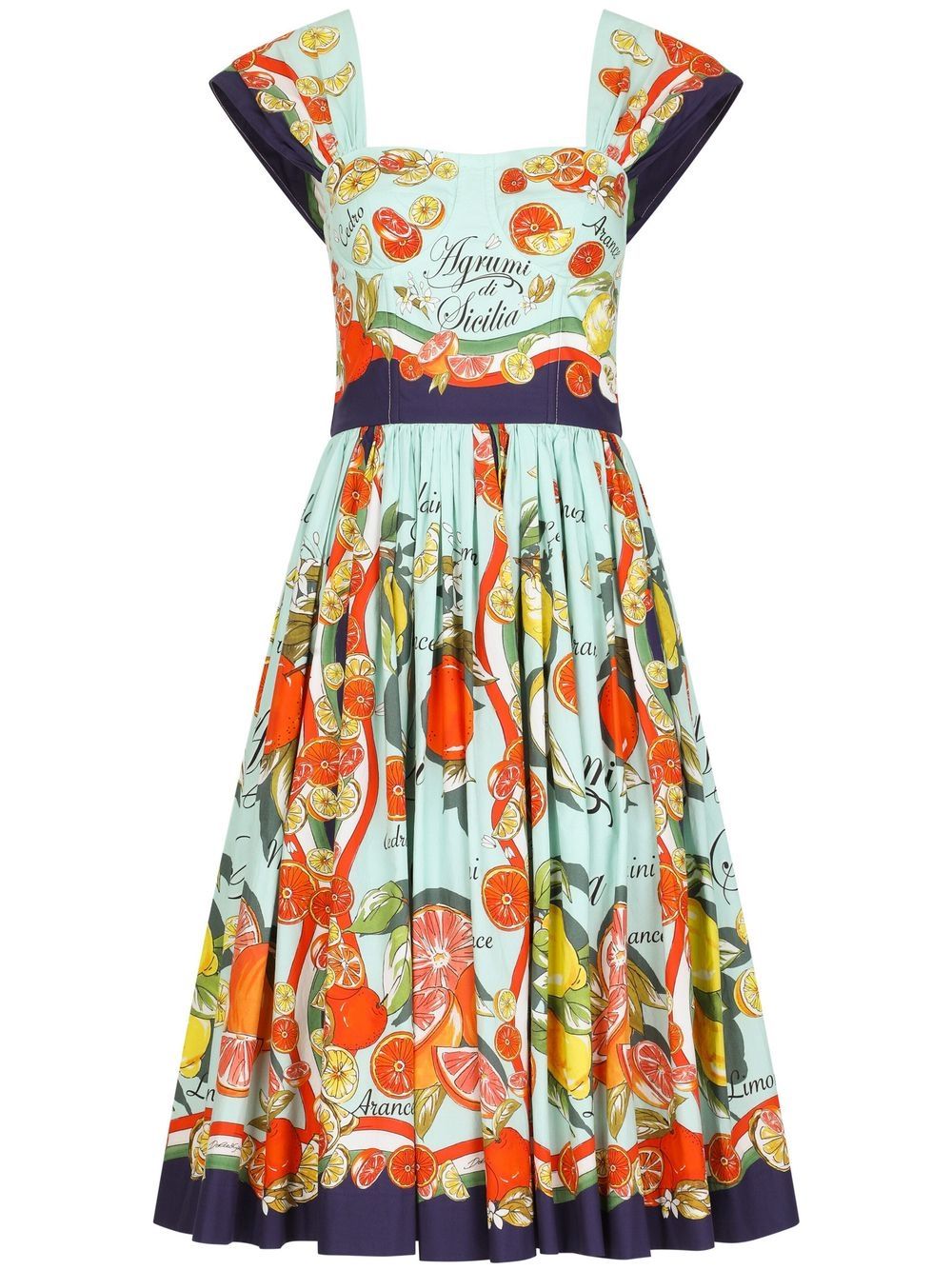 Dolce & Gabbana pays homage to its Italian roots with this cotton-poplin dress. It's decorated with the phrase 'agrumi di sicilia' - which translates to 'fruits of Sicily' - as well as lemon and orange motifs all over.