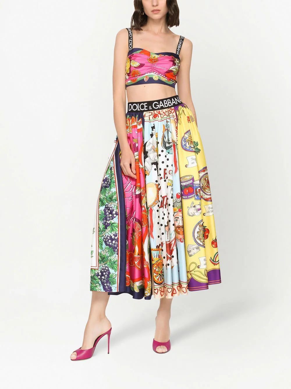 Dolce & Gabbana's cropped top showcases the brand's penchant for bold colour. Detailed with logo-tape shoulder straps, it's decorated with vibrant motifs of Sicilian fruit- a nod to the label's Italian roots.