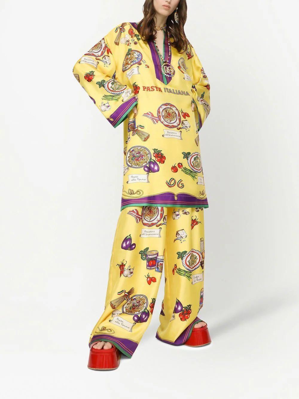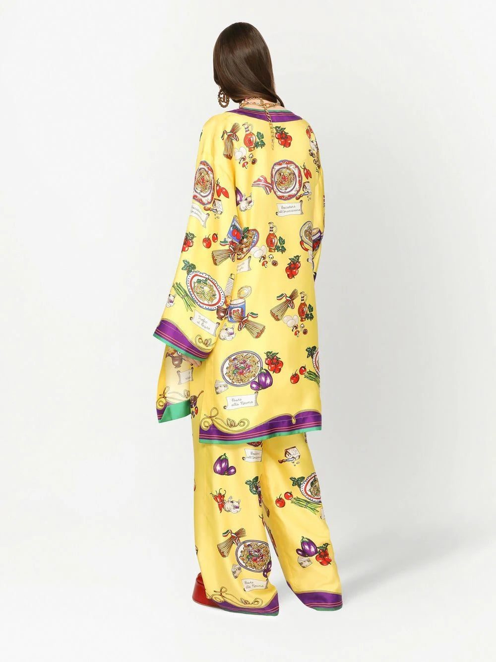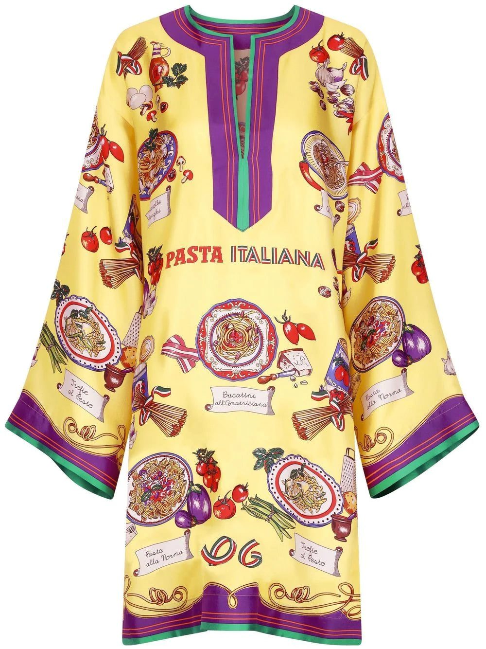 Paying homage to Dolce & Gabbana's Italian roots, this silk kaftan depicts some of Italy's best-loved produce. Notice the drawings of platefuls of pasta and seasonal ingredients.