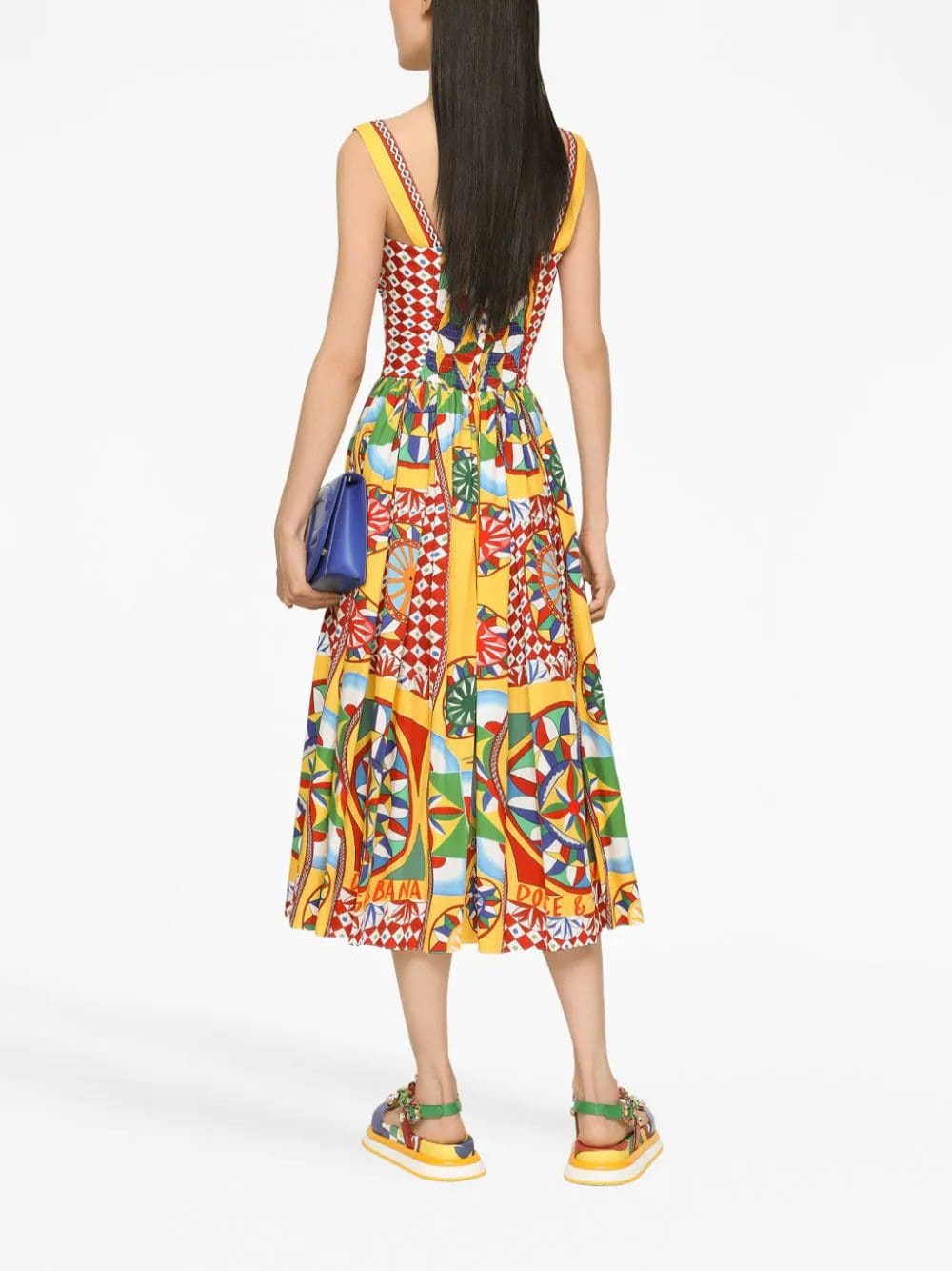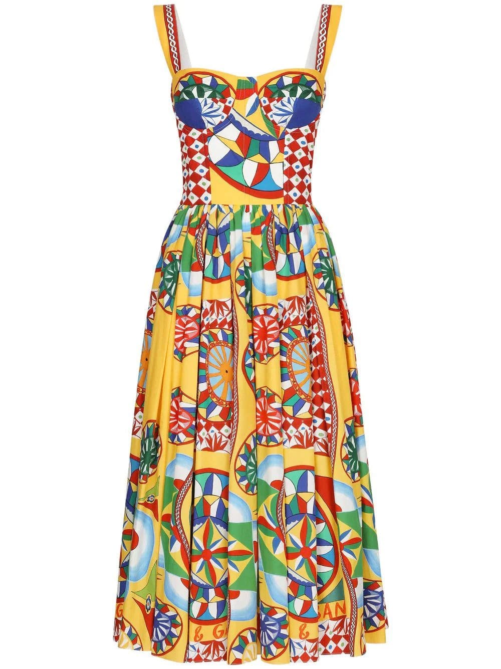 Imagined in a colourful abstract pattern for AW23, this midi dress from Dolce & Gabbana is cut to a structured bodice and falls to an A-line skirt.