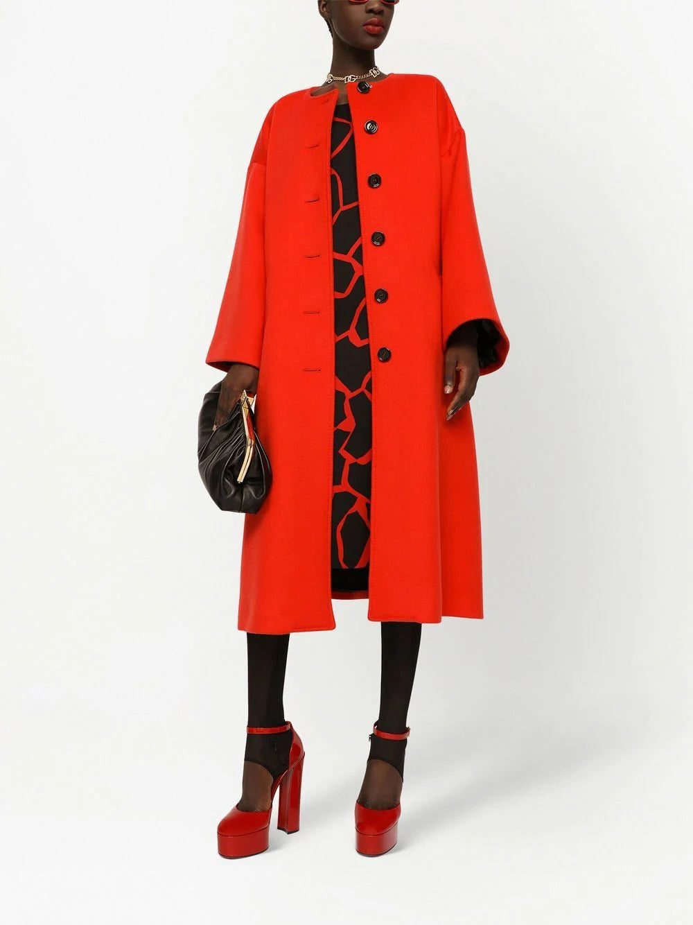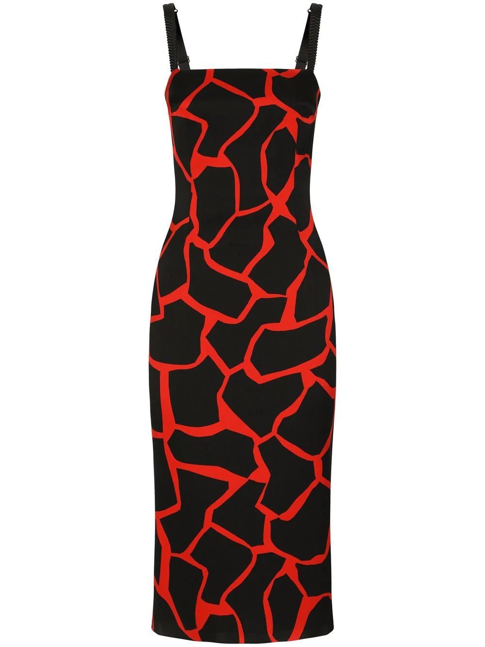 Reflecting the brand's bold take on garments, this Dolce & Gabbana dress boasts an all-over graphic pattern in a vibrant red hue on a black backdrop. It's complete with wide shoulder straps and a square neckline.