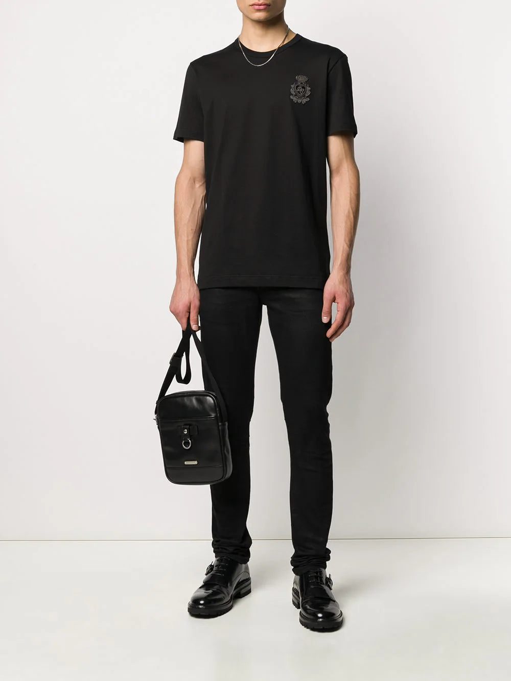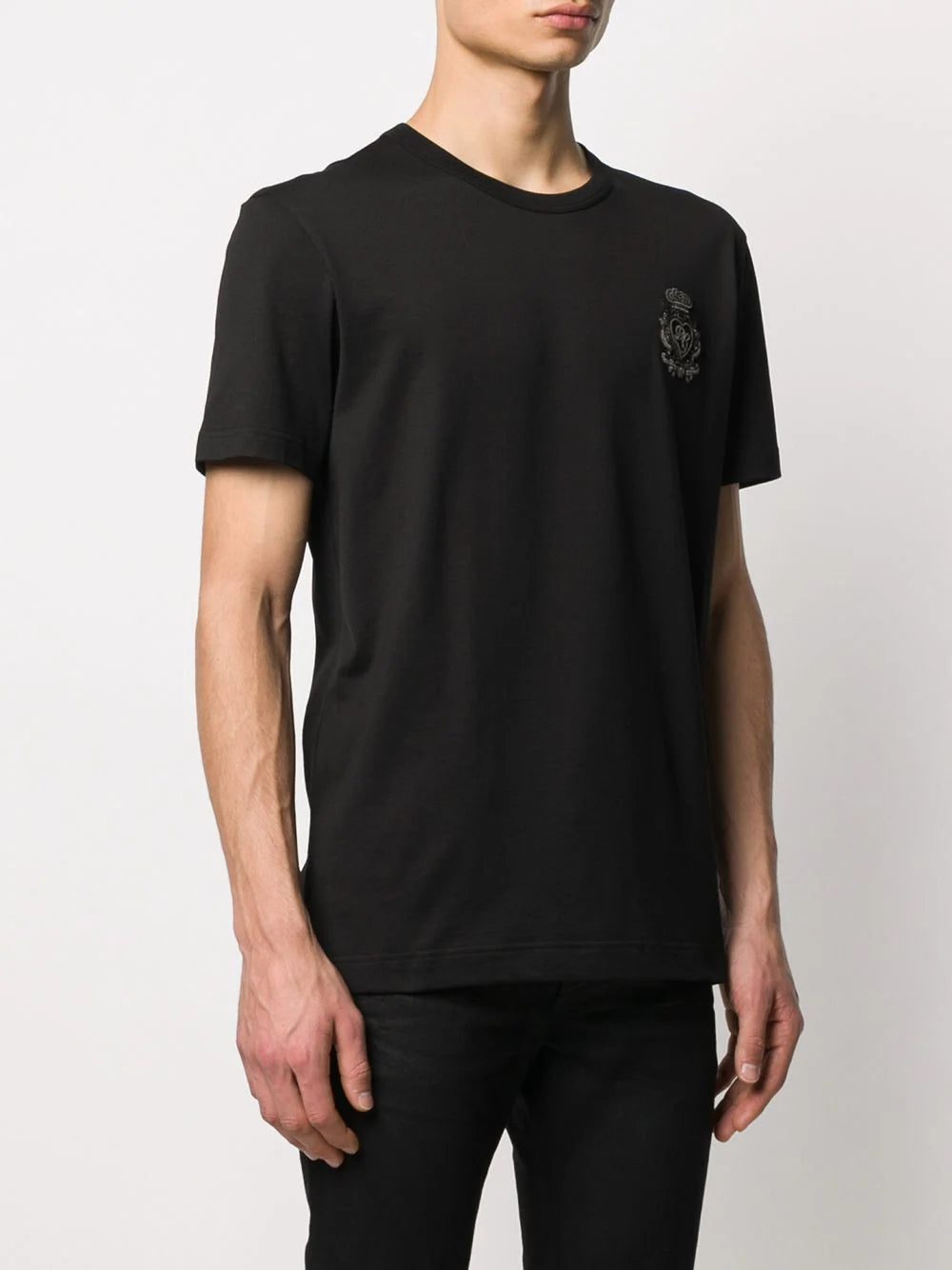 A Dolce & Gabbana collection wouldn't be complete without this black cotton logo crest T-shirt. And your wardrobe wouldn't be complete without it either. Featuring a crew neck, short sleeves and a logo to the chest.