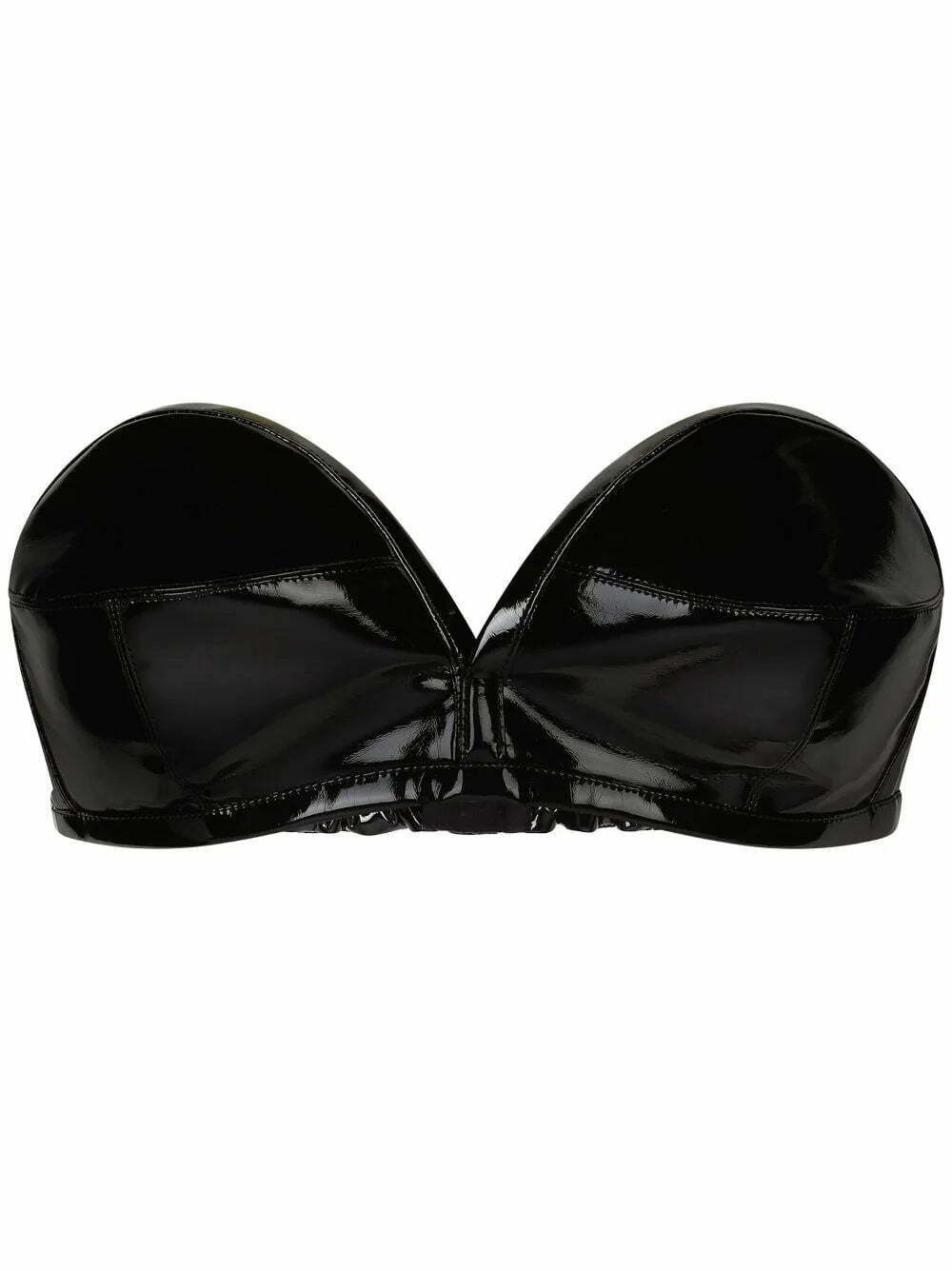 For AW23, Dolce & Gabbana debuts this black bustier top. Crafted in a high-shine finish, it featured a sweetheart neckline and a smocked panel at the rear.