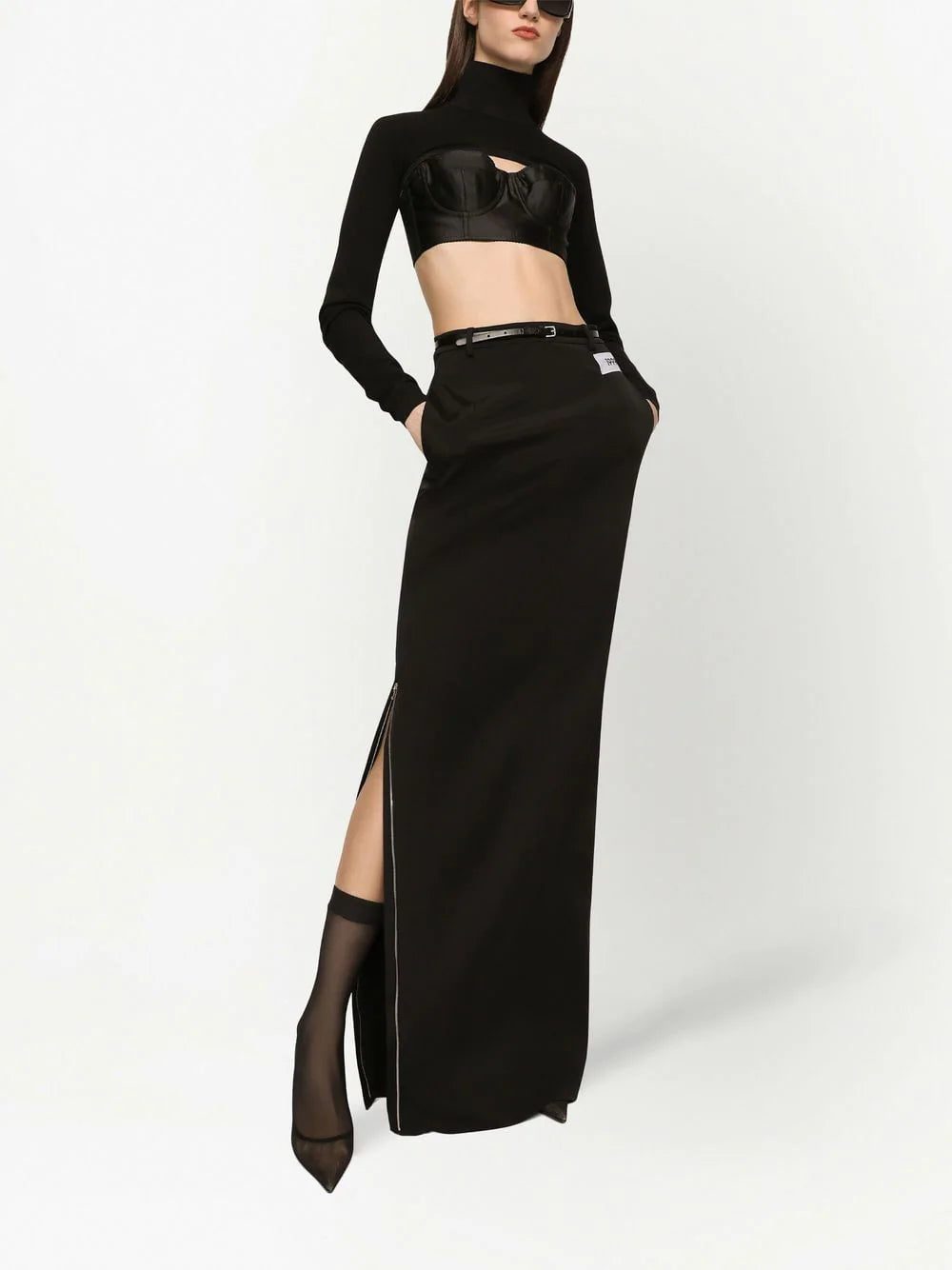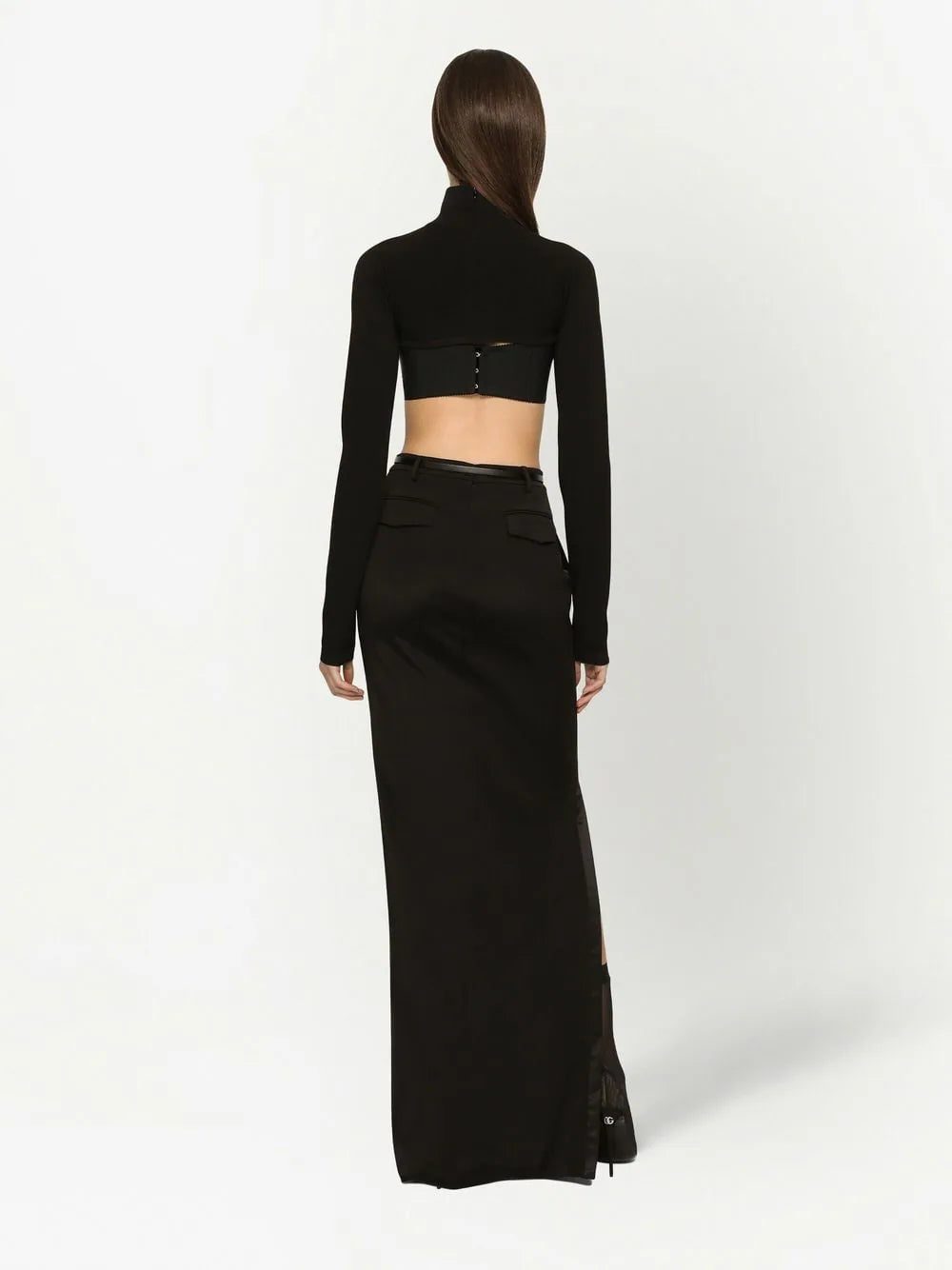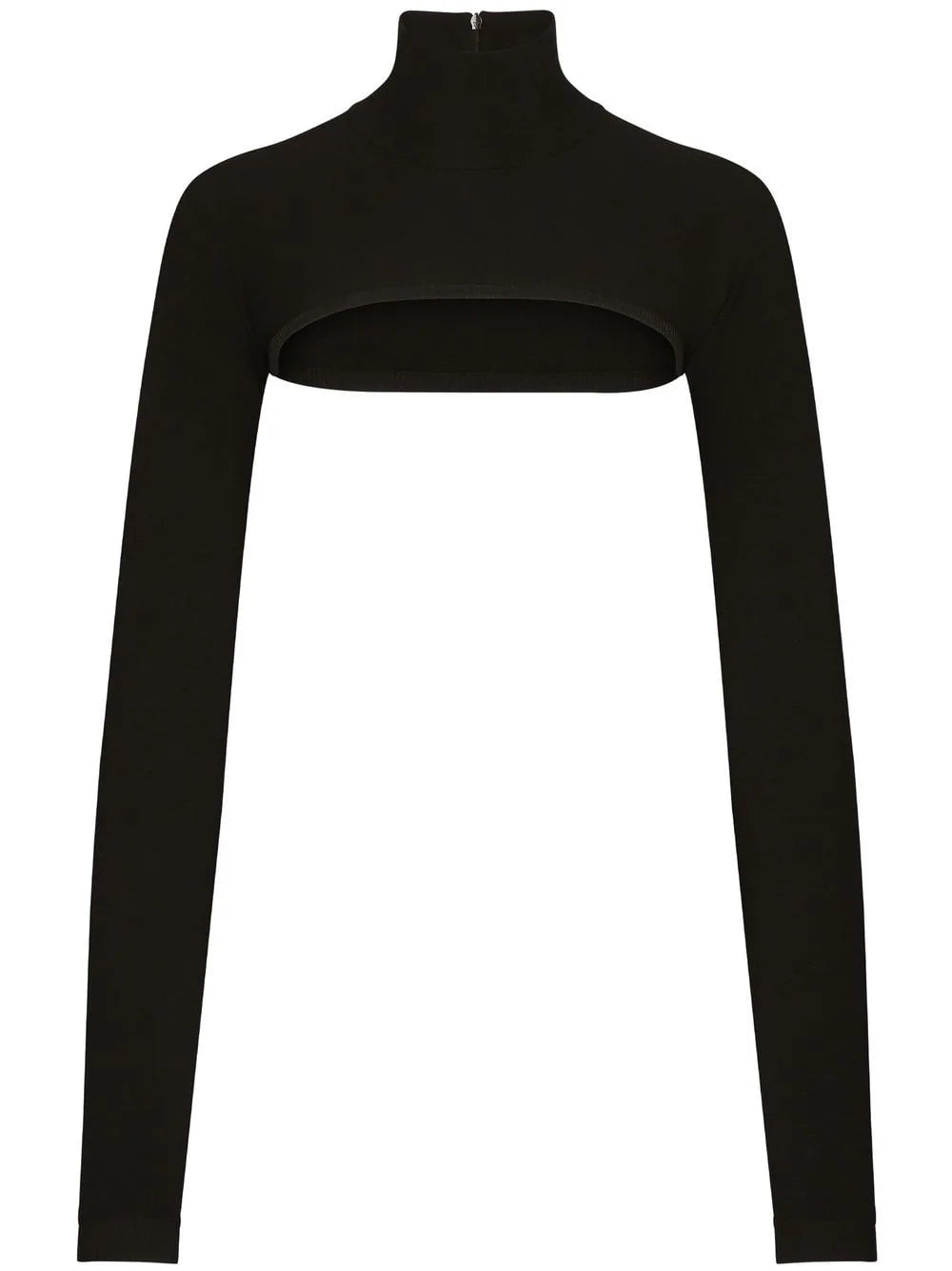KIM DOLCE&GABBANA cropped high-neck top from DOLCE & GABBANA featuring black, high neck, cropped, rear zip fastening and long sleeves.