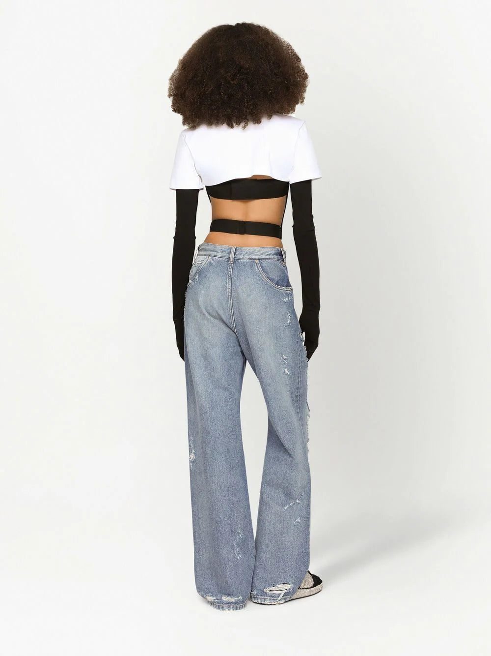 Dolce & Gabbana's bodysuit speaks to the brand's signature boudoir dressing. This lingerie-inspired piece has a semi-sheer tulle construction illuminated with sparkling crystals at the boned bodice.Â