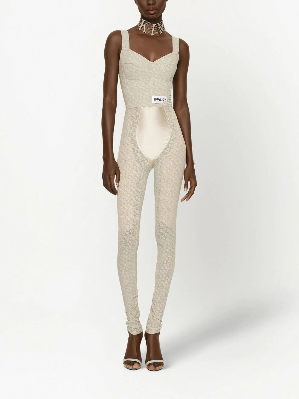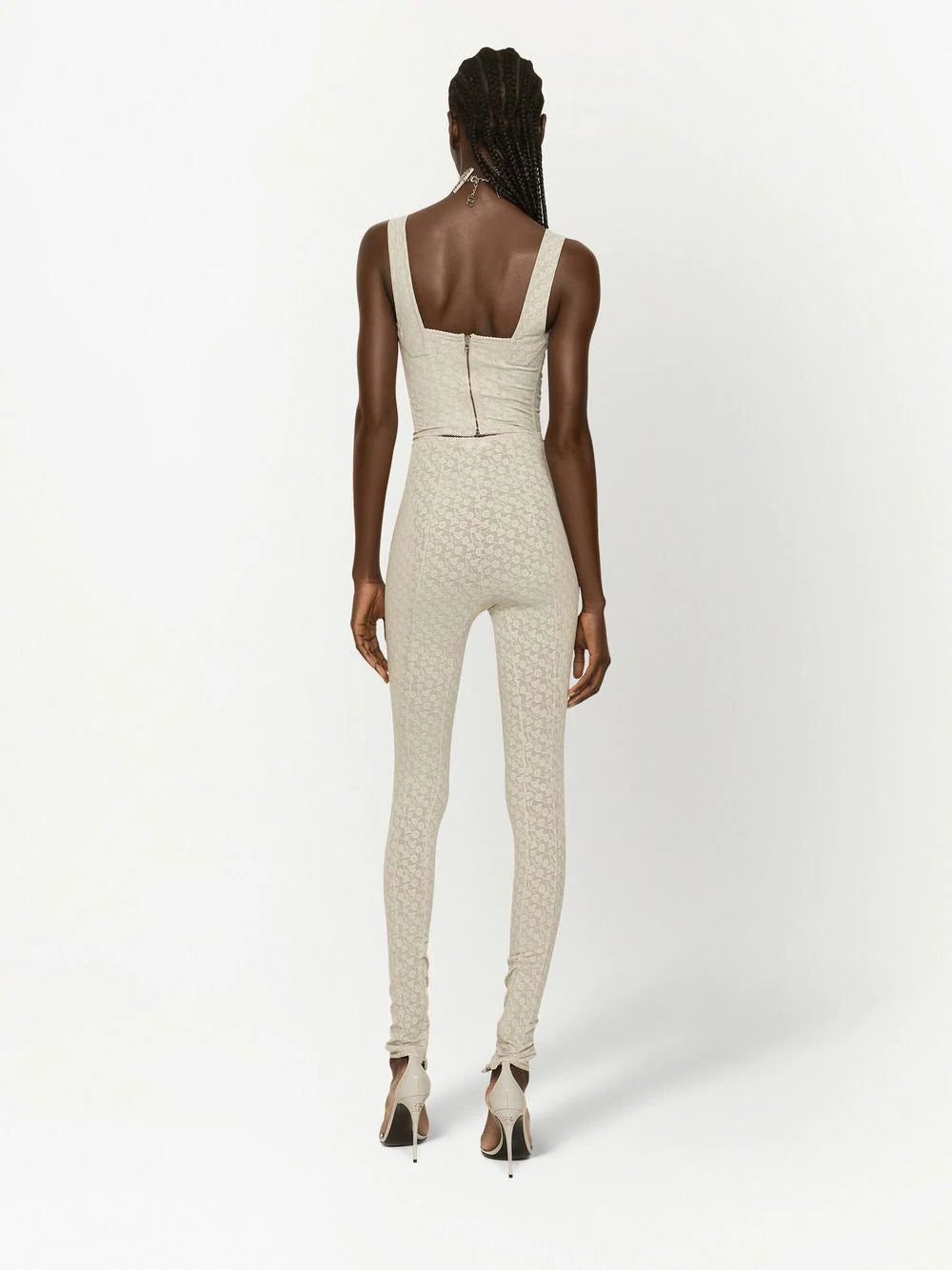 KIM DOLCE&GABBANA floral-lace cropped bodice top from DOLCE & GABBANA featuring beige, stretch-silk, floral-lace detailing, sweetheart neck, wide shoulder straps, exposed rear zip fastening and cropped.