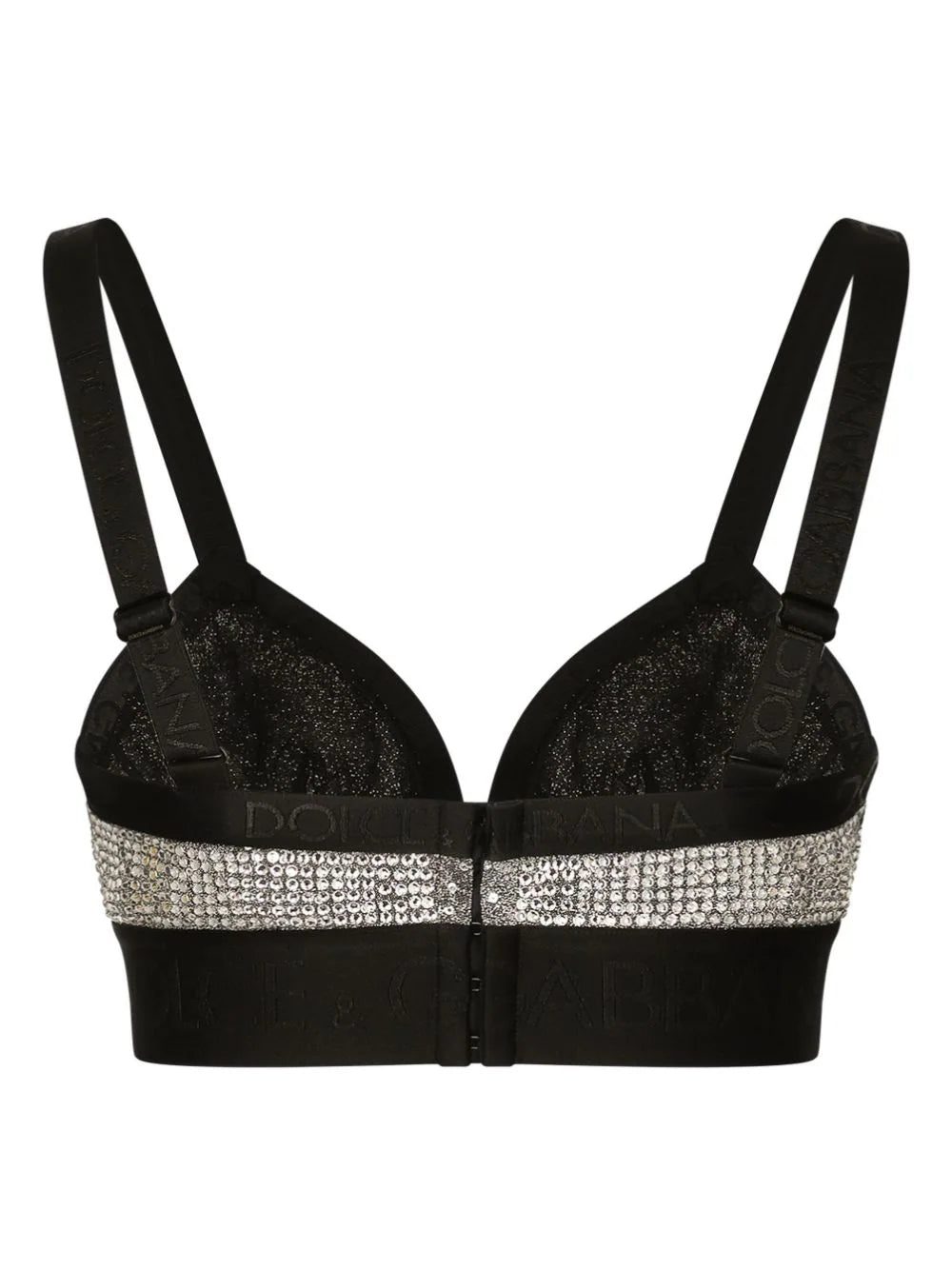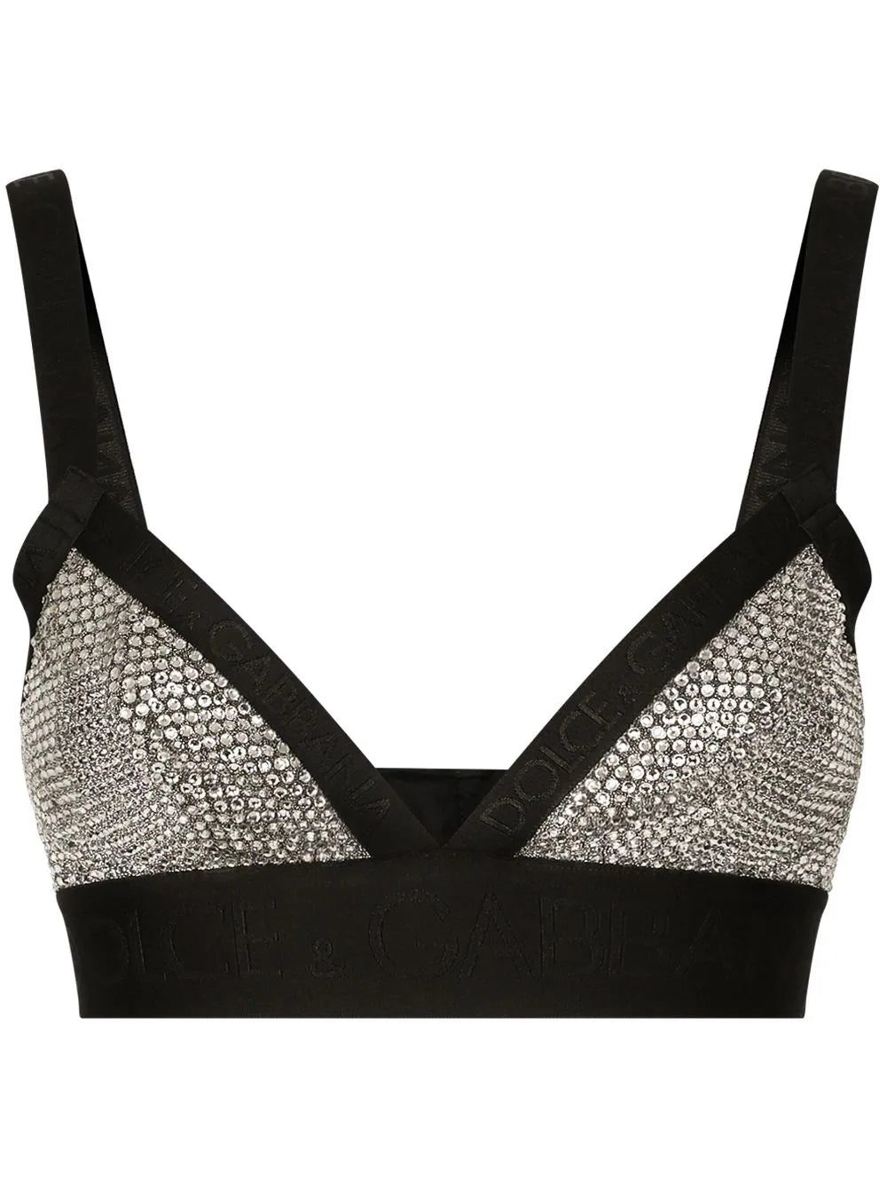 Showing Dolce & Gabbana's bold and glamorous style, this black triangle bra is decorated with fusible rhinestone embellishments. The piece comes with branded elastic underneath for a comfortable fit.