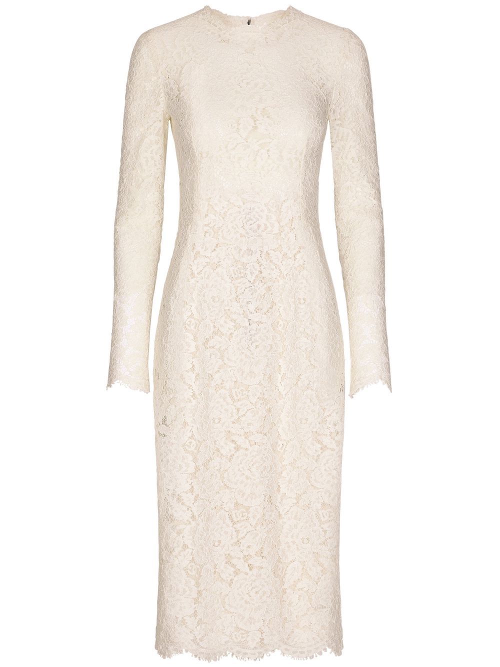Encapsulating Dolce & Gabbana's inherent elegance, this cream-coloured dress is cut from intricate floral lace that boasts a semi-sheer finish.