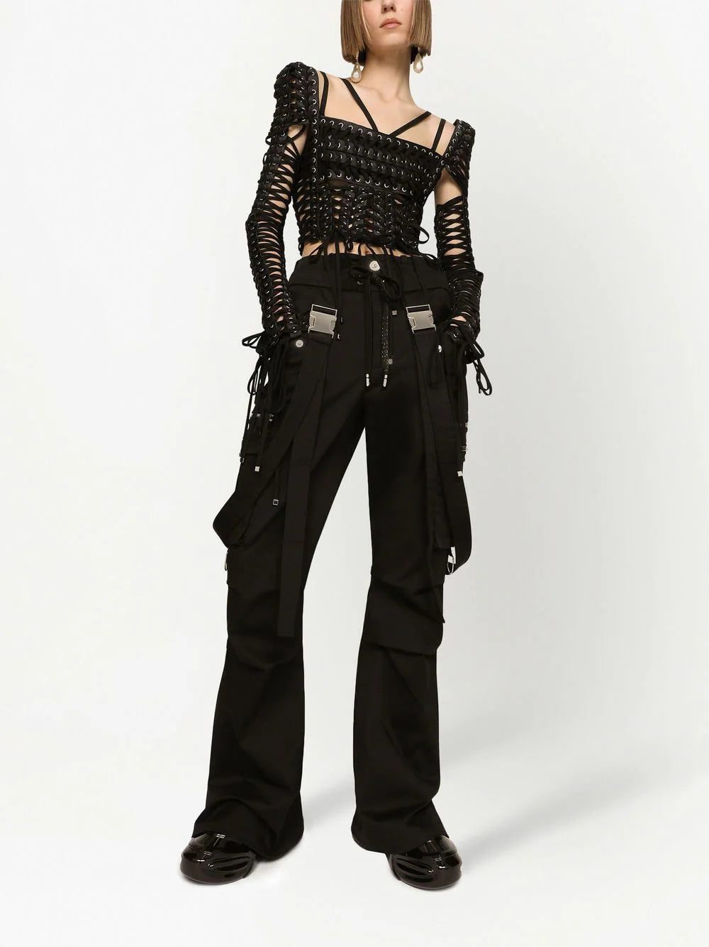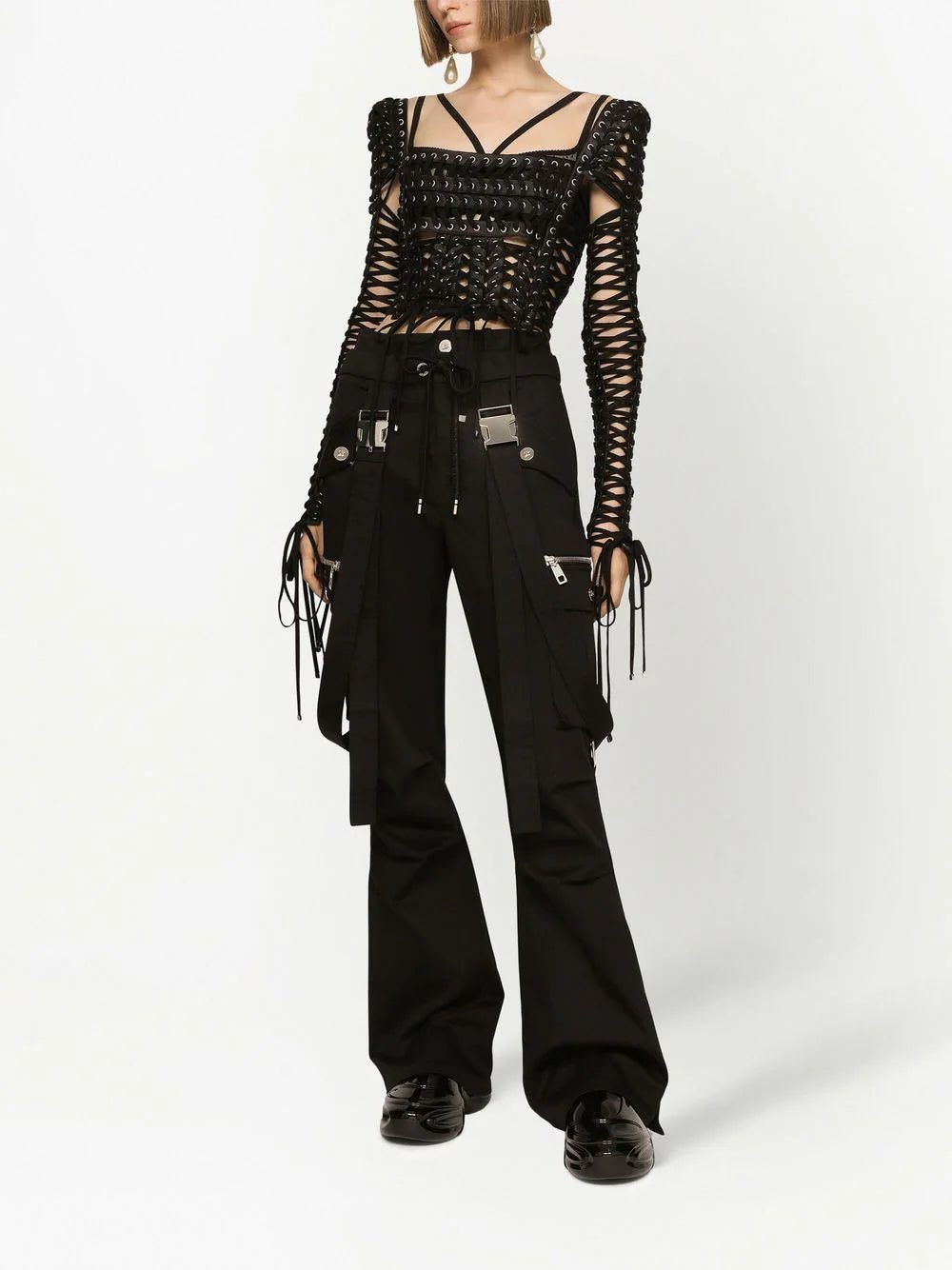Expertly crafted corsetry sits at the heart of the Dolce & Gabbana brand and is encapsulated in this bustier-style blouse. Designed in a tonal black hue with sleek silver-toned hardware, lace-up detailing constructs the piece in a uniquely sculpted design.