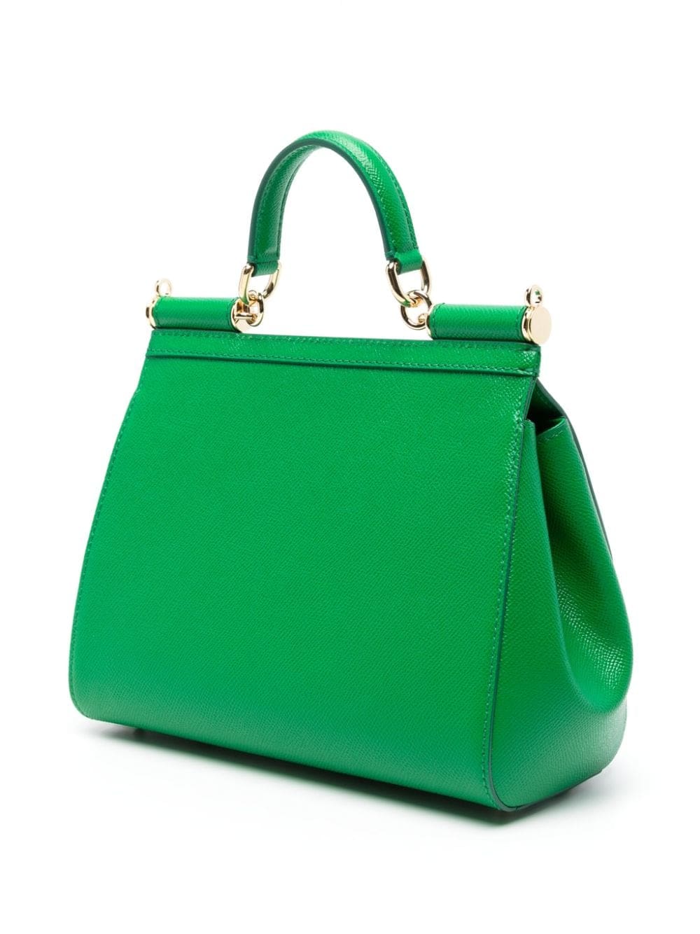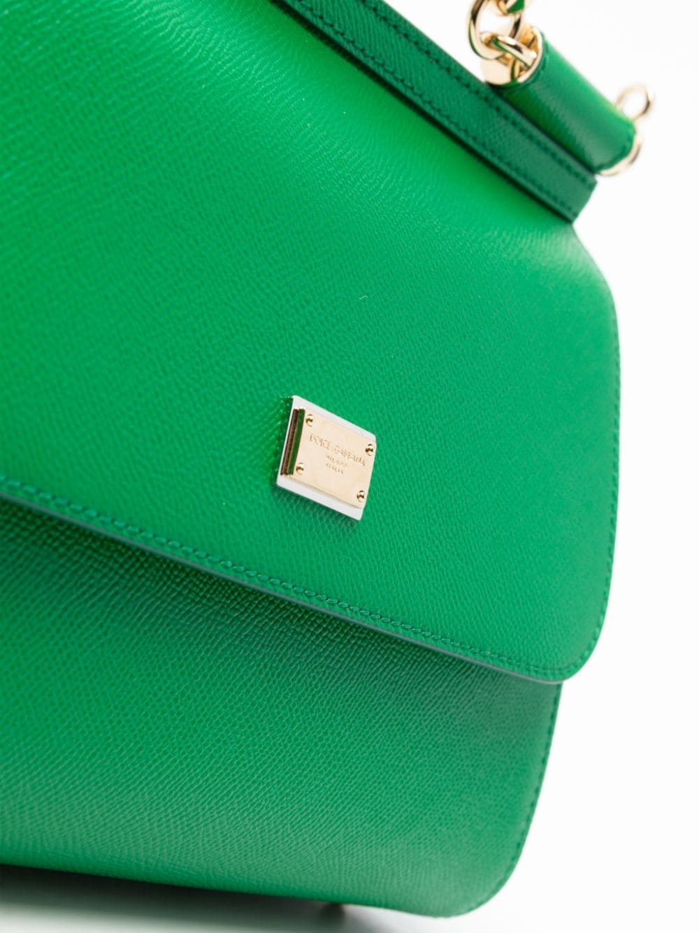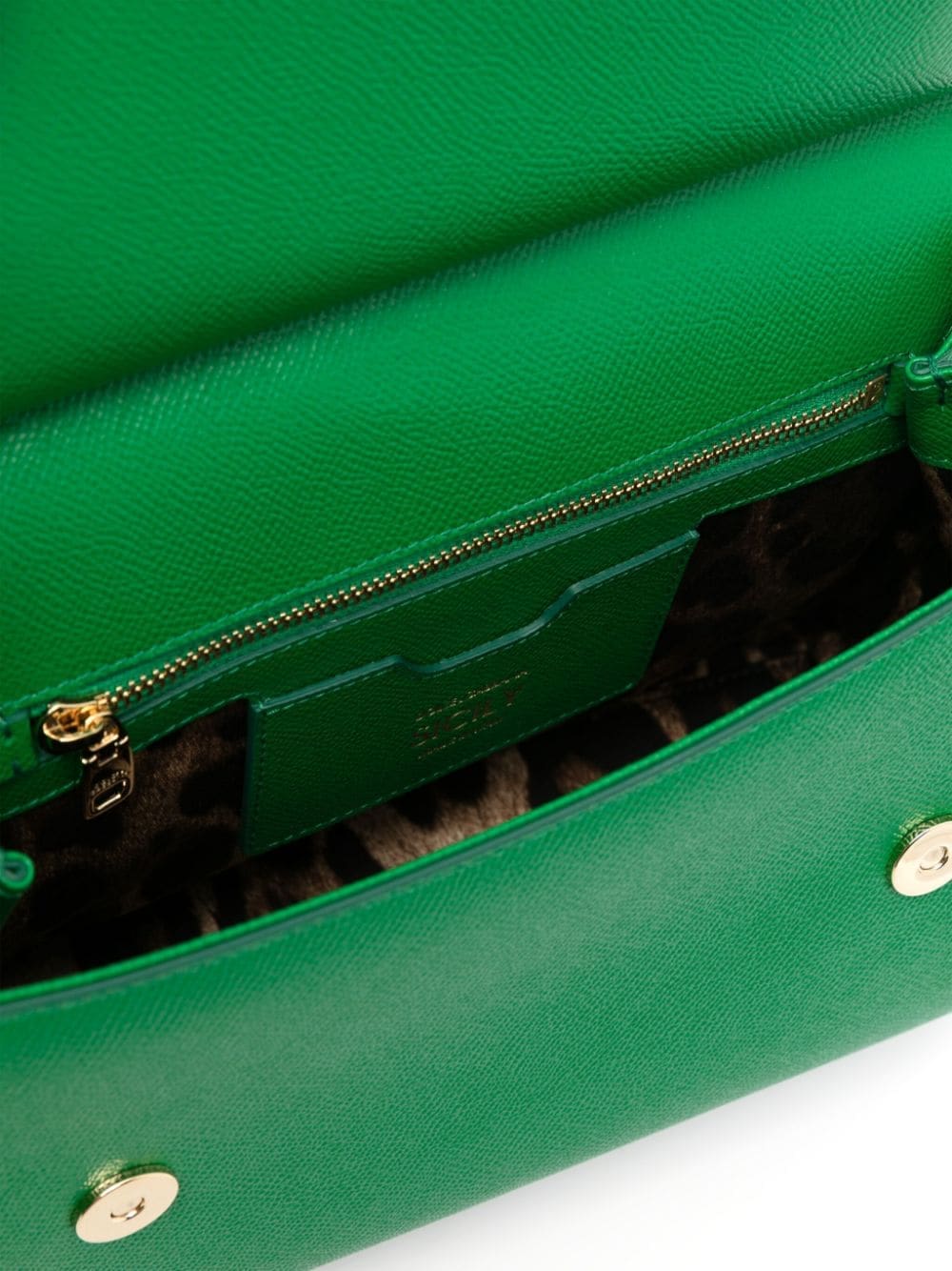 Dolce & Gabbana’s hallmark Sicily bag is a sartorial ode to the founders’ hometown. This large version is crafted to a structural silhouette from durable dauphine leather in a vibrant wash of green and boasts an iconic mixed-metal logo plaque at the front flap. The interior is sized to hold daily essentials and protected with a signature leopard-print lining.