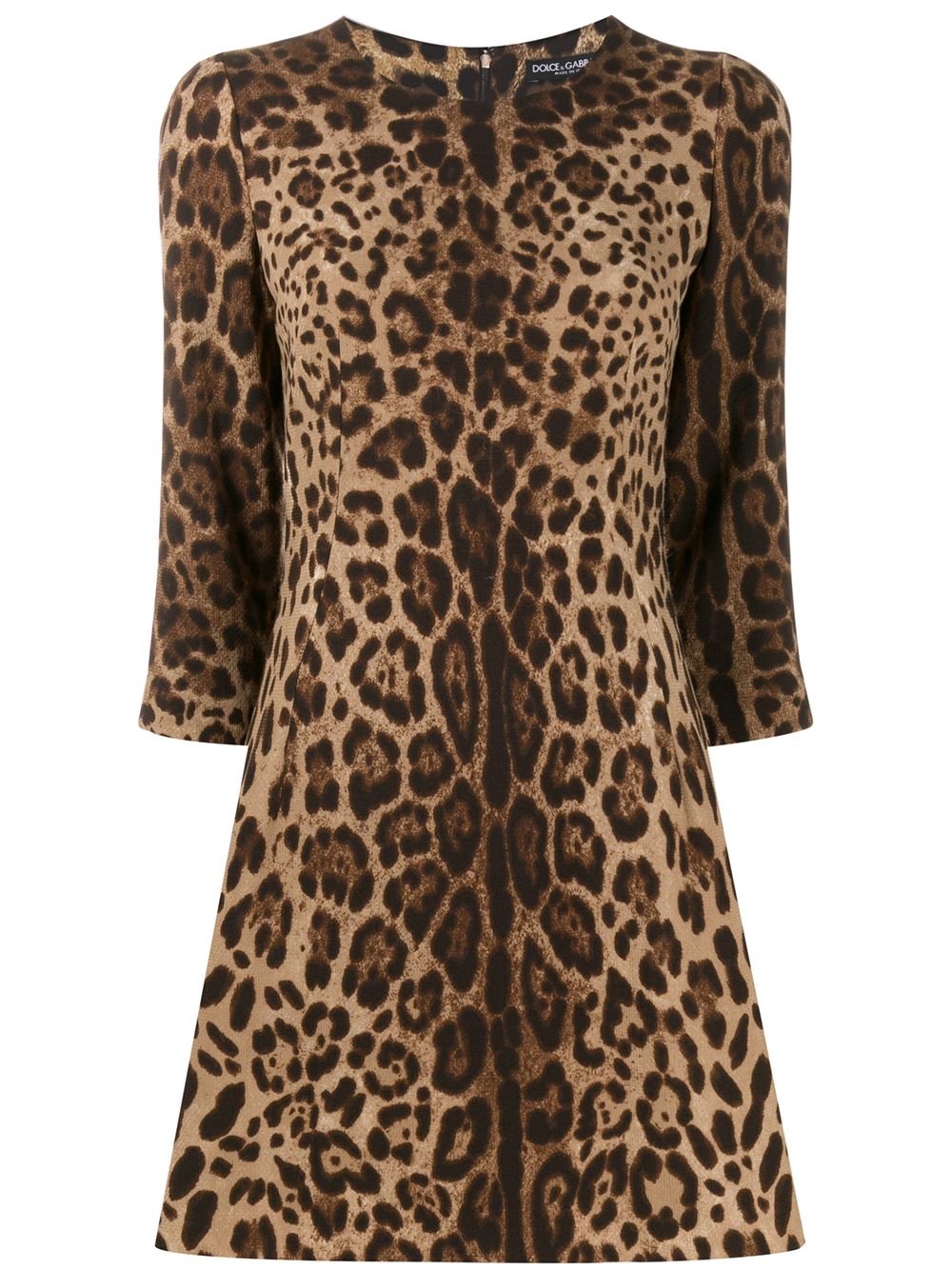 Crafted in Italy, this tonal-brown wool leopard print dress from Dolce & Gabbana embodies the fashion house’s feminine aesthetic. Featuring a round neck, a concealed rear zip fastening, three-quarter length sleeves, a fitted waist, a flared skirt, a straight hem and a mid-length.