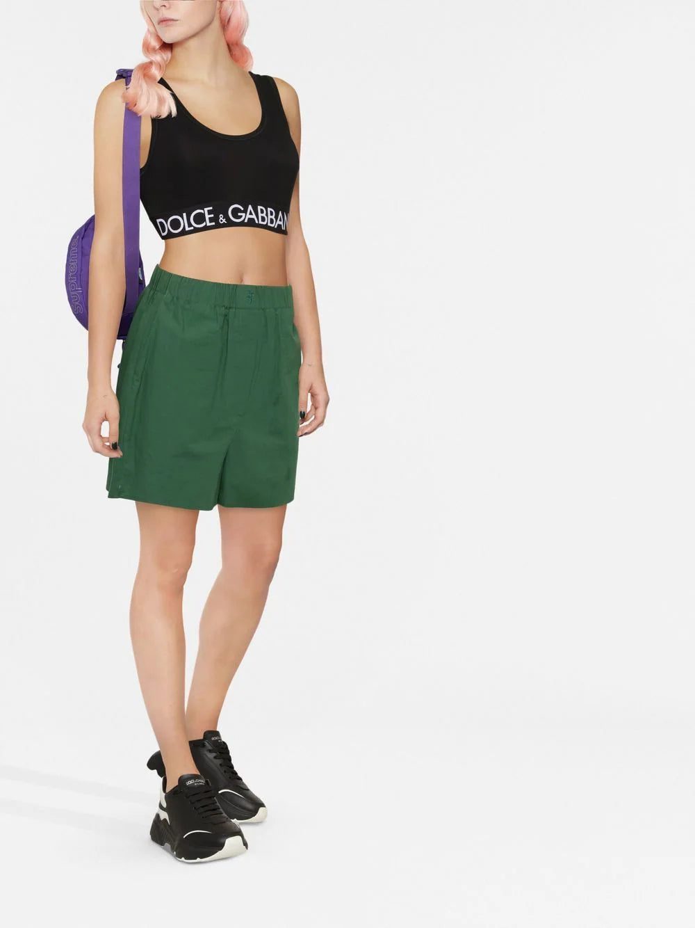 Taking pride in their iconic brand name, Dolce & Gabbana presents this cropped tank top in an athletic stretch design, punctuated by the graphic contrasting logo waistband.