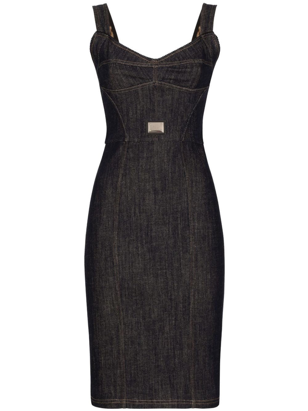 logo-plaque midi denim dress