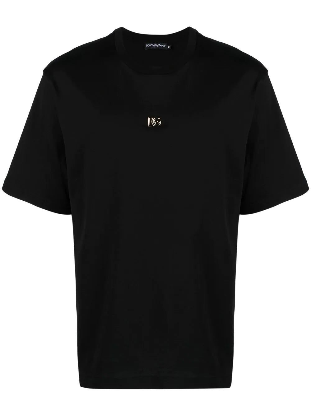 Adding an element of opulence to this casualwear garment, Dolce & Gabbana adds a gold-tone logo plaque to the front of this T-shirt from the SS23 collection.Â