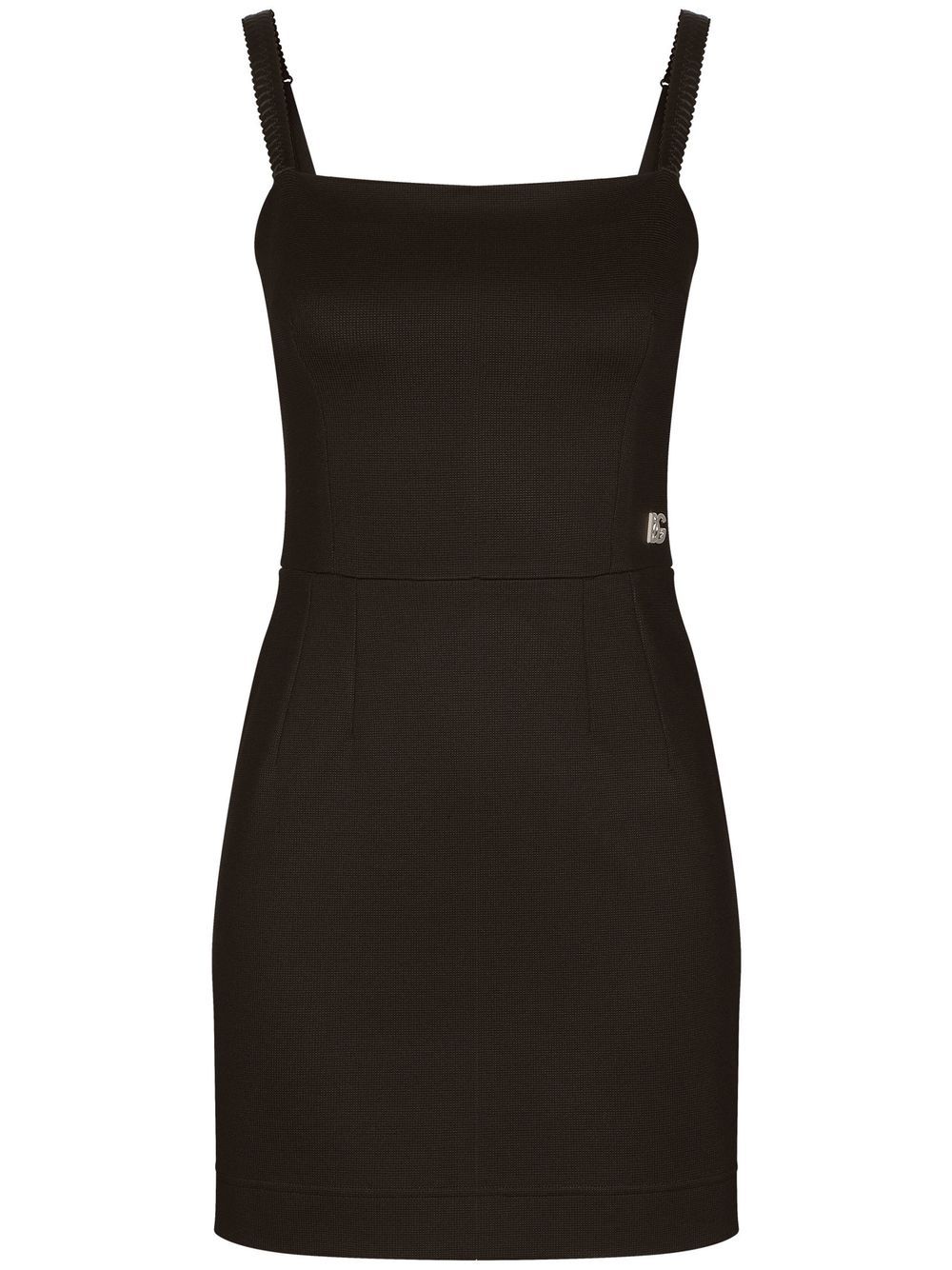 logo plaque sleeveless mini dress from DOLCE & GABBANA featuring black, adjustable spaghetti straps, square neck, sleeveless, silver-tone logo plaque and stretch-design.