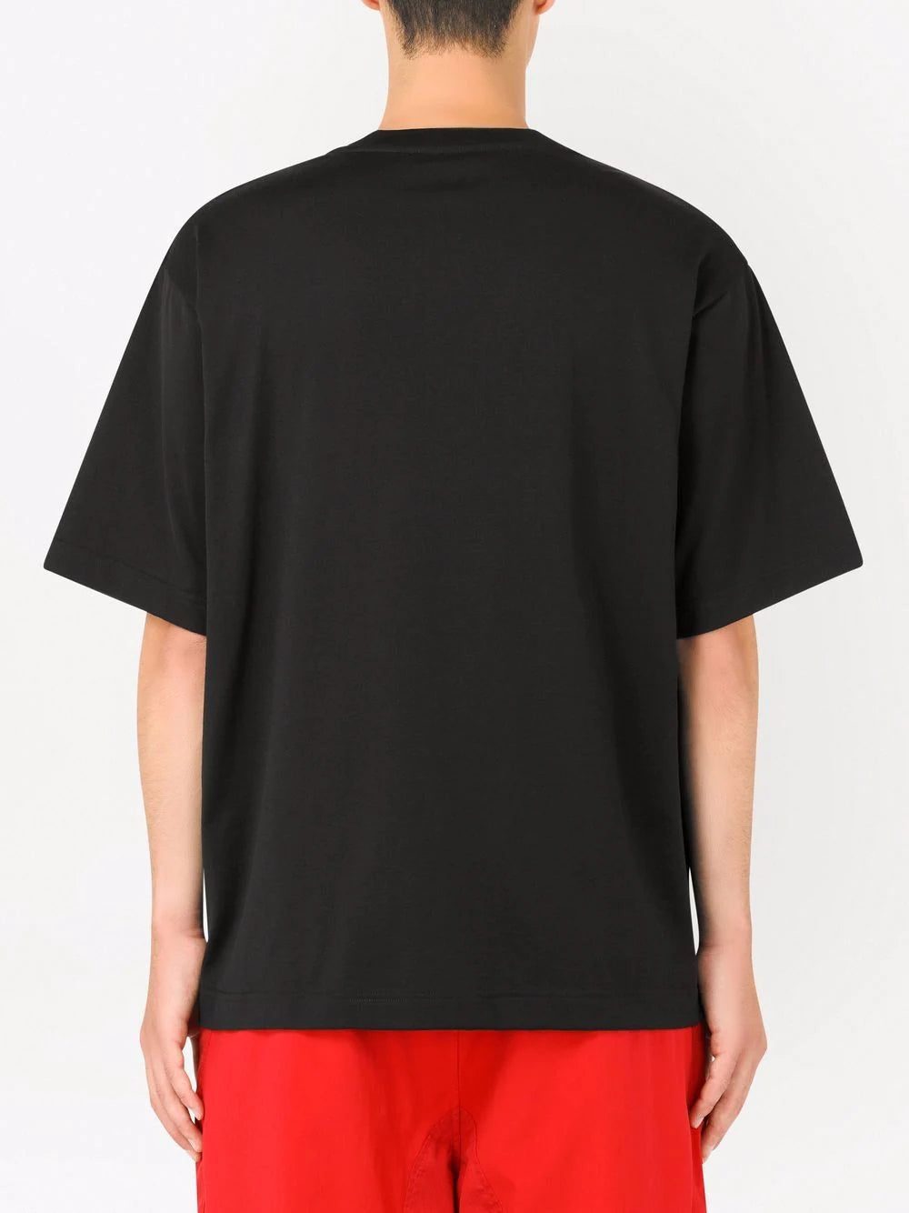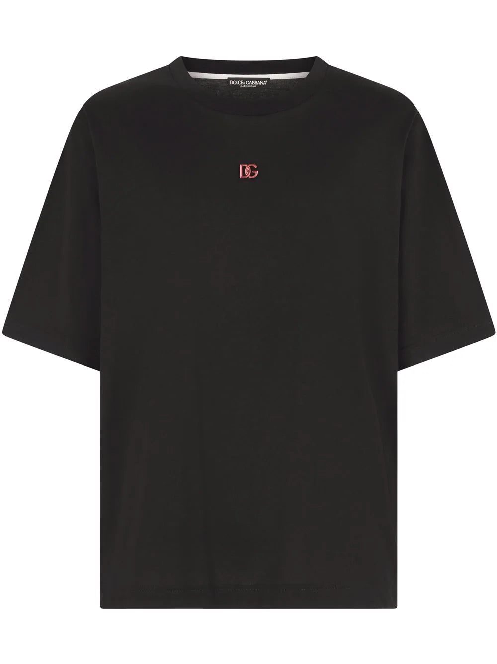 This black cotton T-shirt from Dolce & Gabbana offers a refreshing and minimalist take on the classic logo T-shirt. This half-sleeve design is punctuated with a small logo plaque on the front.