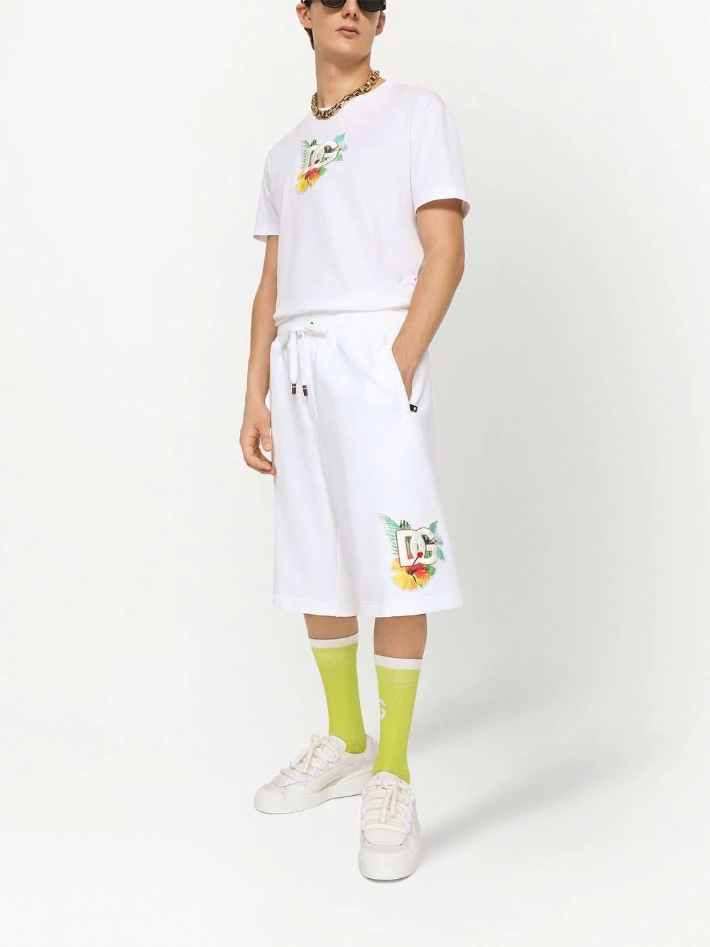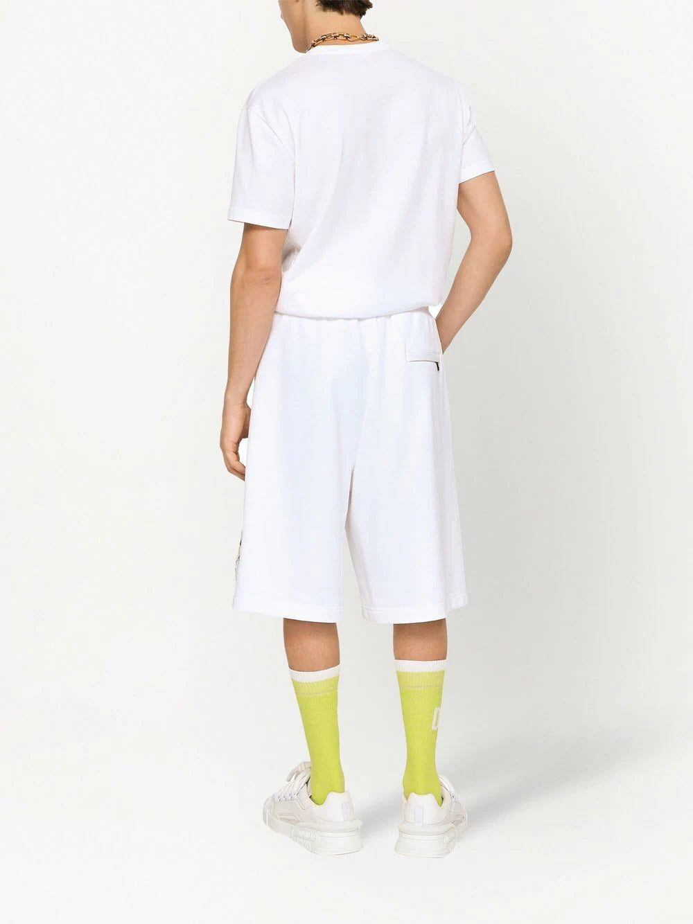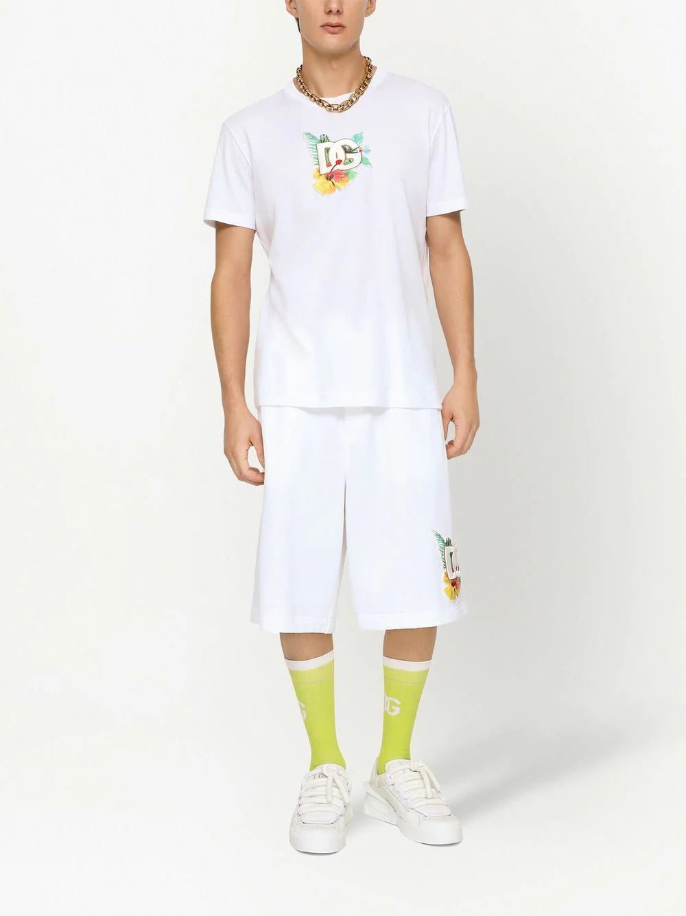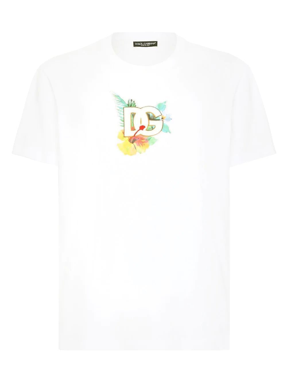 logo-print cotton T-shirt from DOLCE & GABBANA featuring white, cotton, jersey knit, logo print to the front, crew neck, short sleeves and straight hem.