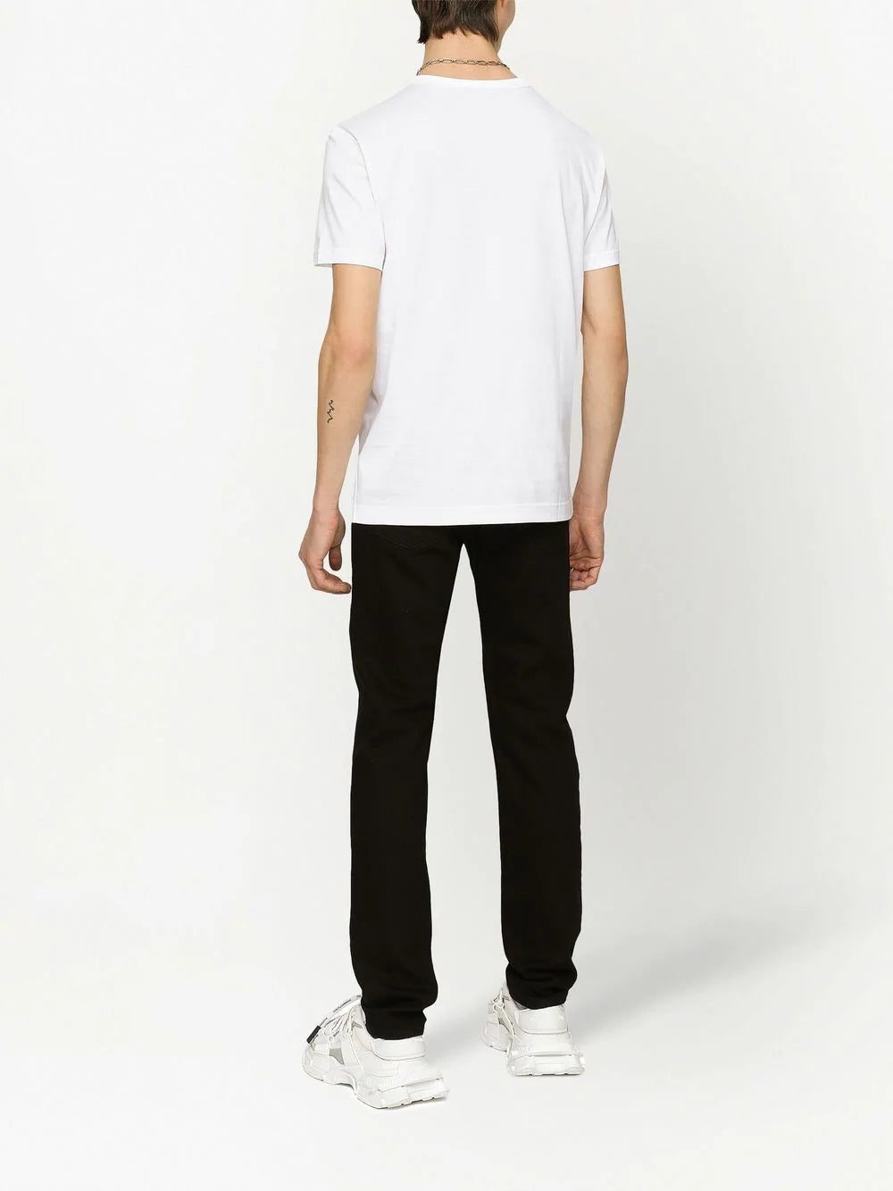 A nod to Dolce & Gabbana's penchant for branded embellishments, this soft cotton T-shirt is defined by its short-sleeve silhouette whilst boasting a silver-tone plaque at the chest with intricate engraving.