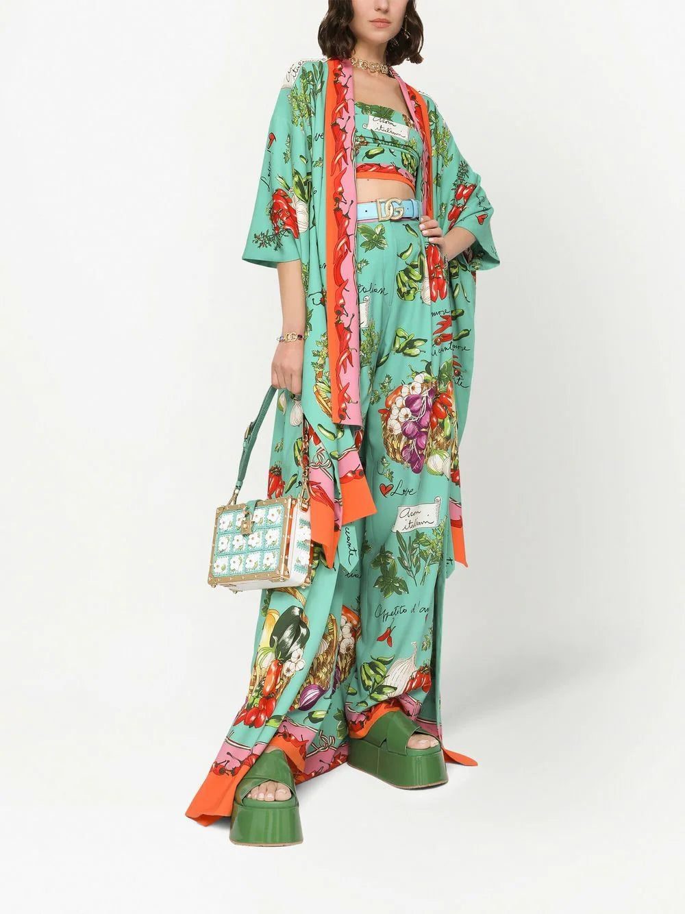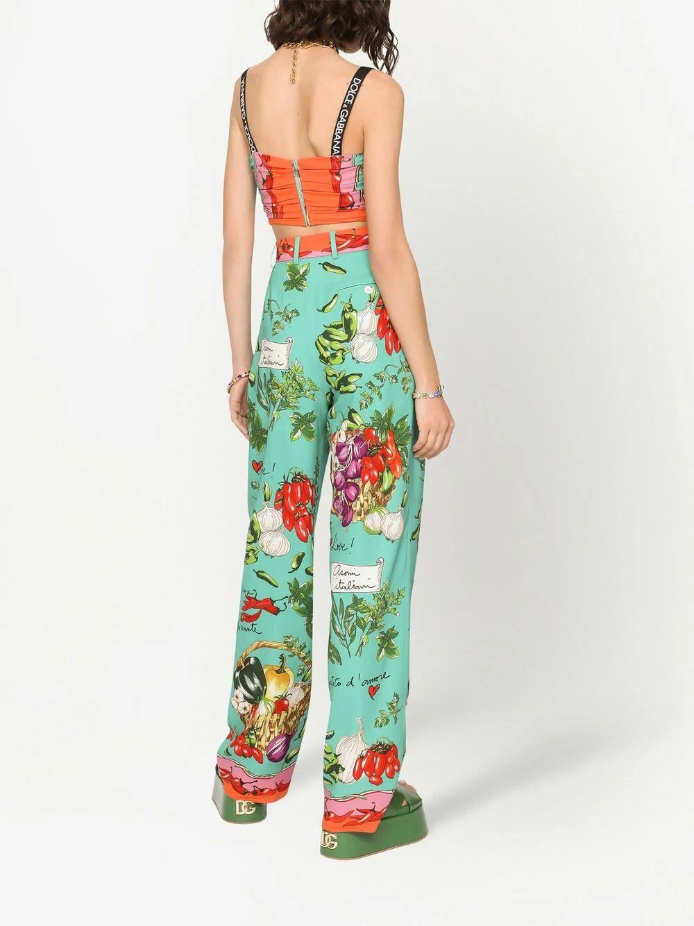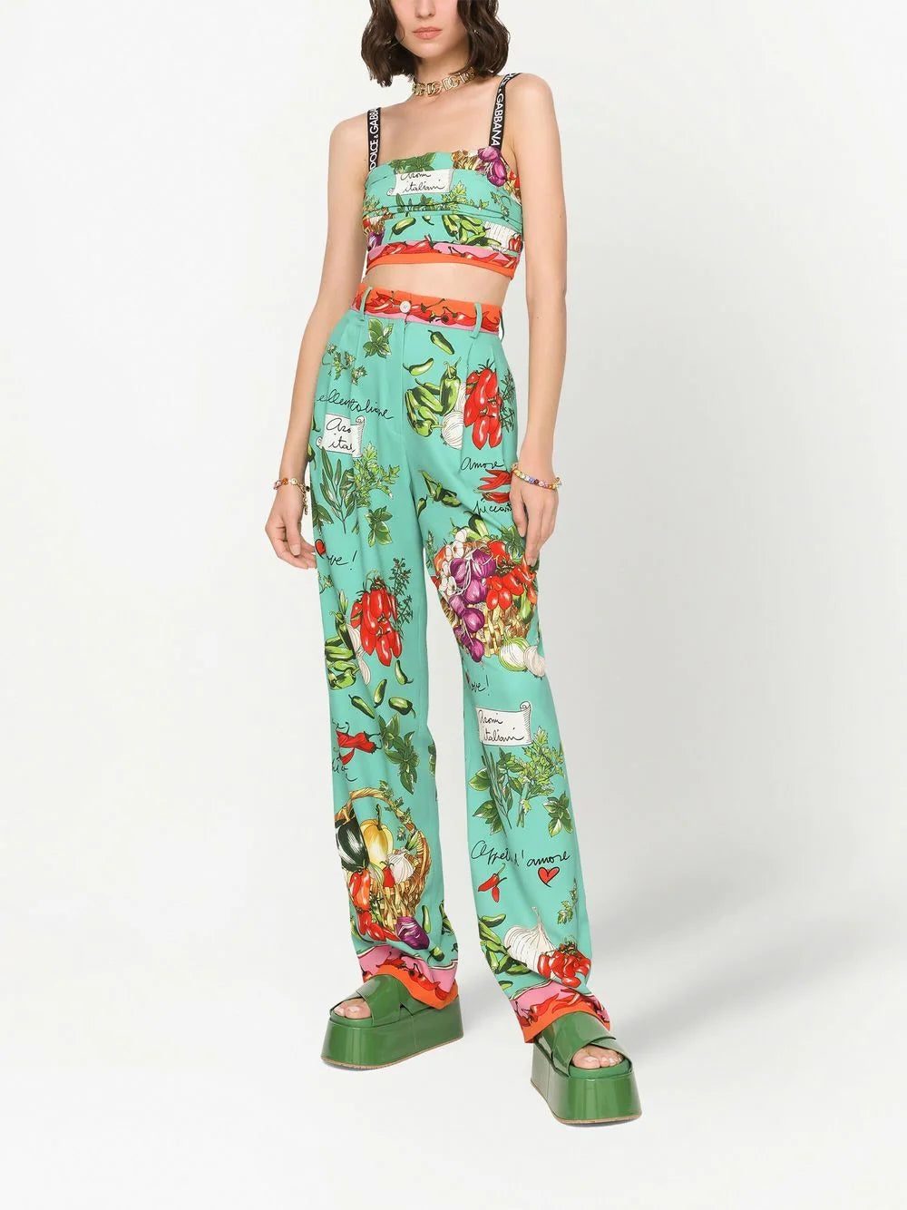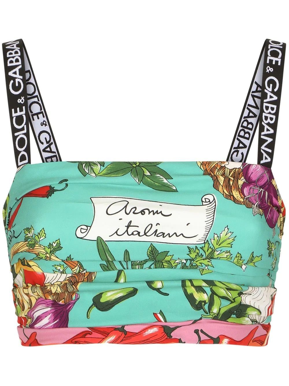 Dolce & Gabbana's cropped top showcases the brand's penchant for bold colour. Detailed with logo-tape shoulder straps, it's decorated with vibrant motifs depicting some of Italy's best-loved produce - a nod to the label's Italian roots.